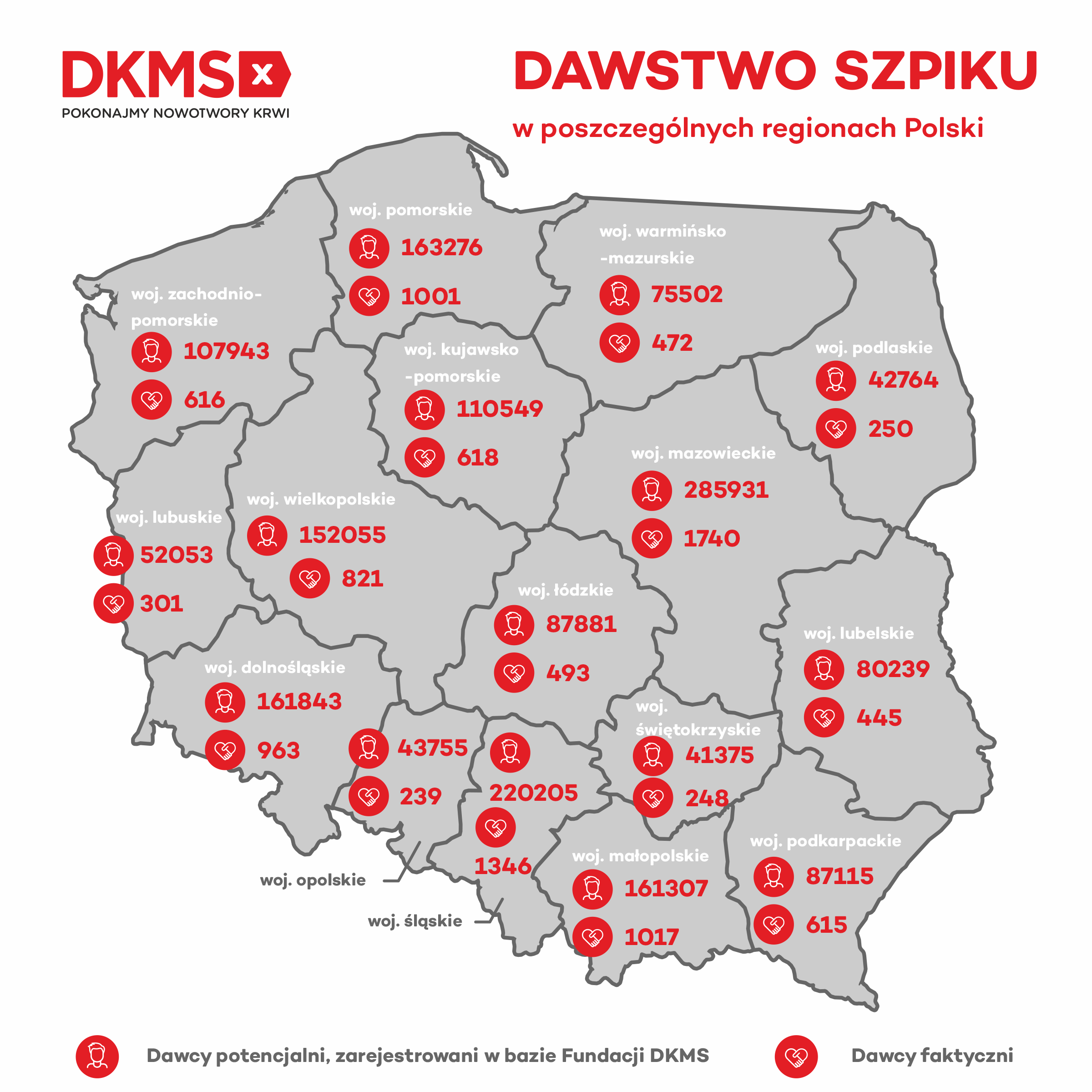 Od początku działalności Fundacji DKMS już 11 458 dawców faktycznych dało szansę na życie swoim „bliźniakom genetycznym” z Polski i świata. W 2022 roku do donacji przystąpiło 1442 dawców, a krwiotwórcze komórki macierzyste zostały pobrane dla pacjentów z Polski, USA, Niemiec, Francji, Włoch, Wielkiej Brytanii, ale też tak odległych zakątków, jak m.in. Argentyna, RPA, Nowa Zelandia czy Urugwaj.