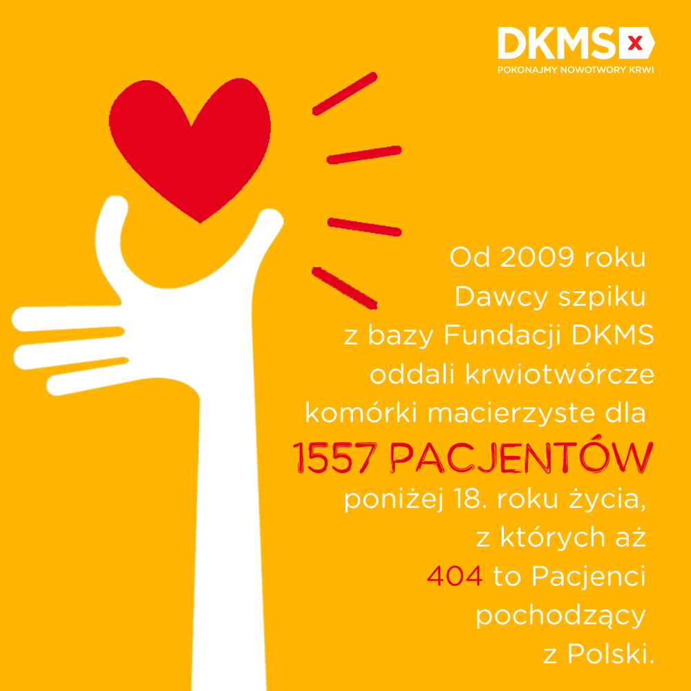 W Polsce każdego roku około 120 dzieci otrzymuje krwiotwórcze komórki macierzyste od Dawcy niespokrewnionego. Od 2009 roku Dawcy szpiku z bazy Fundacji DKMS oddali krwiotwórcze komórki macierzyste dla 1557 Pacjentów poniżej 18. roku życia, z których aż 404 to Pacjenci pochodzący z Polski.