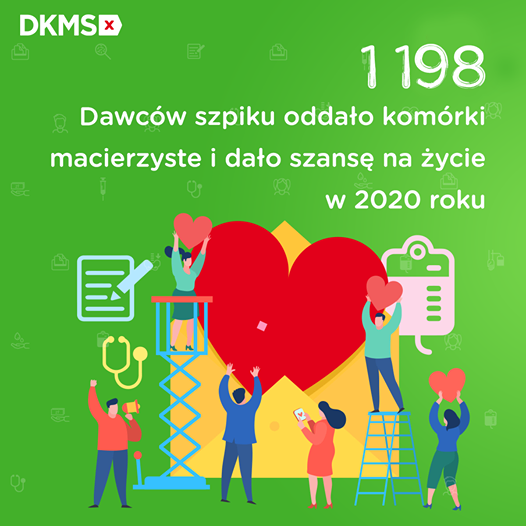 Jednak pomimo tych trudności, miniony rok dla wielu osób okazał się także szansą na drugie życie. Dzięki ogromnemu zaangażowaniu i gotowości Dawców szpiku oraz pracowników Fundacji DKMS, aż 1198 Pacjentów otrzymało krwiotwórcze komórki macierzyste bądź szpik, by móc wygrać z nowotworem krwi. Baza potencjalnych Dawców szpiku Fundacji DKMS powiększyła się w 2020 o 109 251 osób, co daje w sumie 1 770 345 potencjalnych Dawców szpiku. Co jeszcze wydarzyło się w minionym roku?