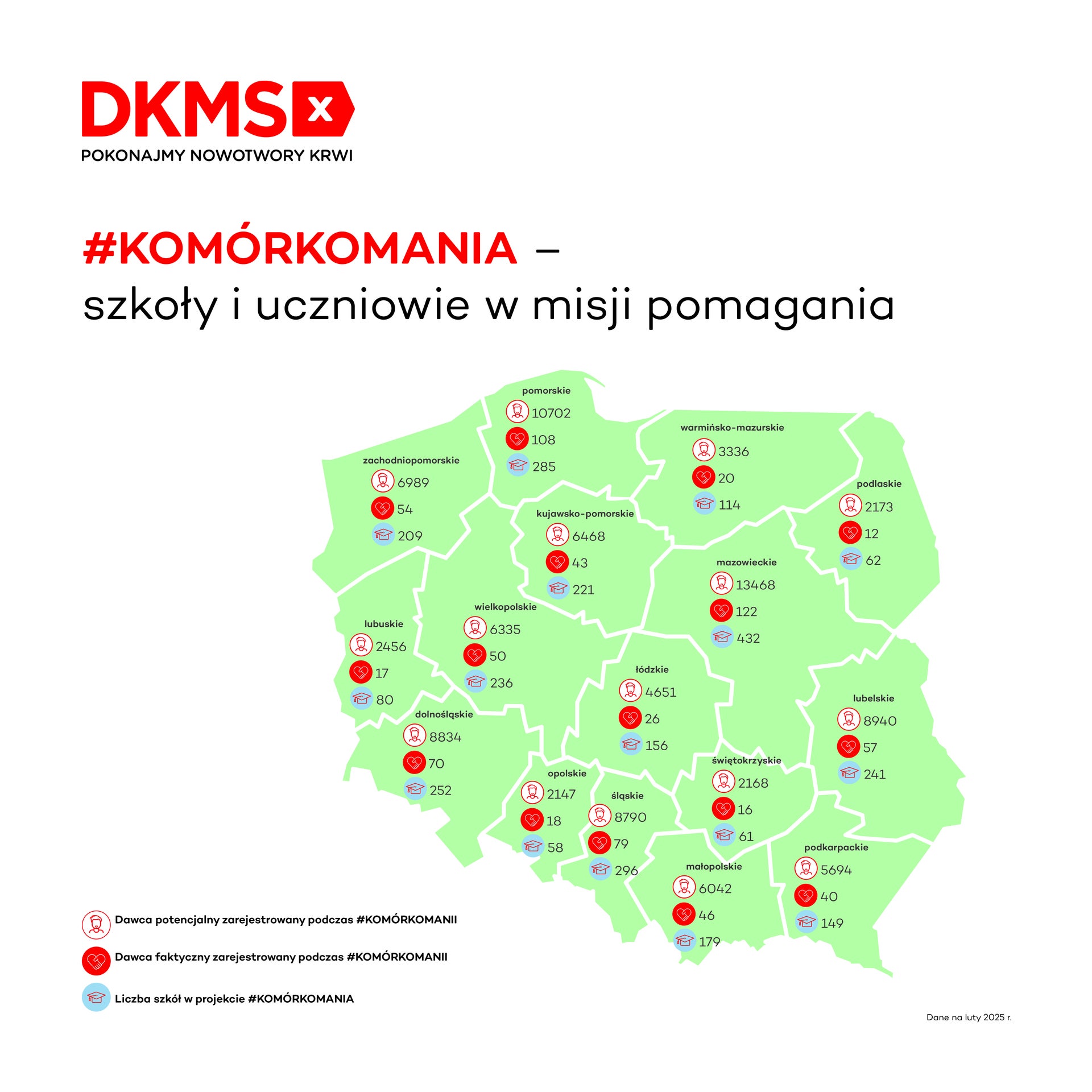Chociaż ta okrągła liczba nie padła na lekcji matematyki, to bez wątpienia jest wynikiem działania. 19 marca, w Zespole Szkół w Libiążu, zarejestrował się 100 000 potencjalny dawca szpiku z projektu #KOMÓRKOMANIA! Idea dawstwa szpiku od 2016 roku gości w placówkach oświatowych w niemal całej Polsce. Dotychczas w inicjatywę włączyło się 3030 szkół, które przeprowadziły łącznie 4091 akcji edukacyjno-rejestracyjnych. Dzięki ich wspólnemu zaangażowaniu aż 778 dawców faktycznych dało już komuś szansę na życie. Co 20. Potencjalny dawca w bazie Fundacji DKMS pochodzi właśnie z projektu #KOMÓRKOMANIA.