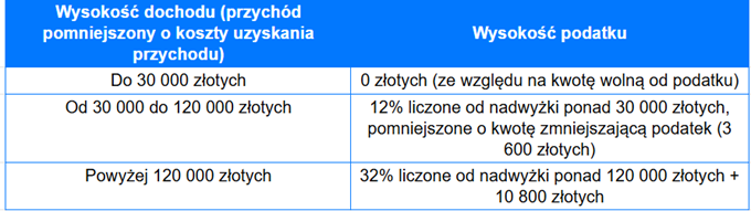 Jaka jest kwota wolna od podatku w 2026 roku? Tak, jak zostało to wspomniane powyżej, wynosi ona 30 000 złotych. W zależności od wysokości dochodu, podatki kształtują się więc następująco: