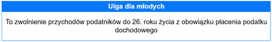Ulga obowiązuje do dnia 26. urodzin włącznie. Przychody uzyskane po tym dniu podlegają opodatkowaniu na zasadach ogólnych.