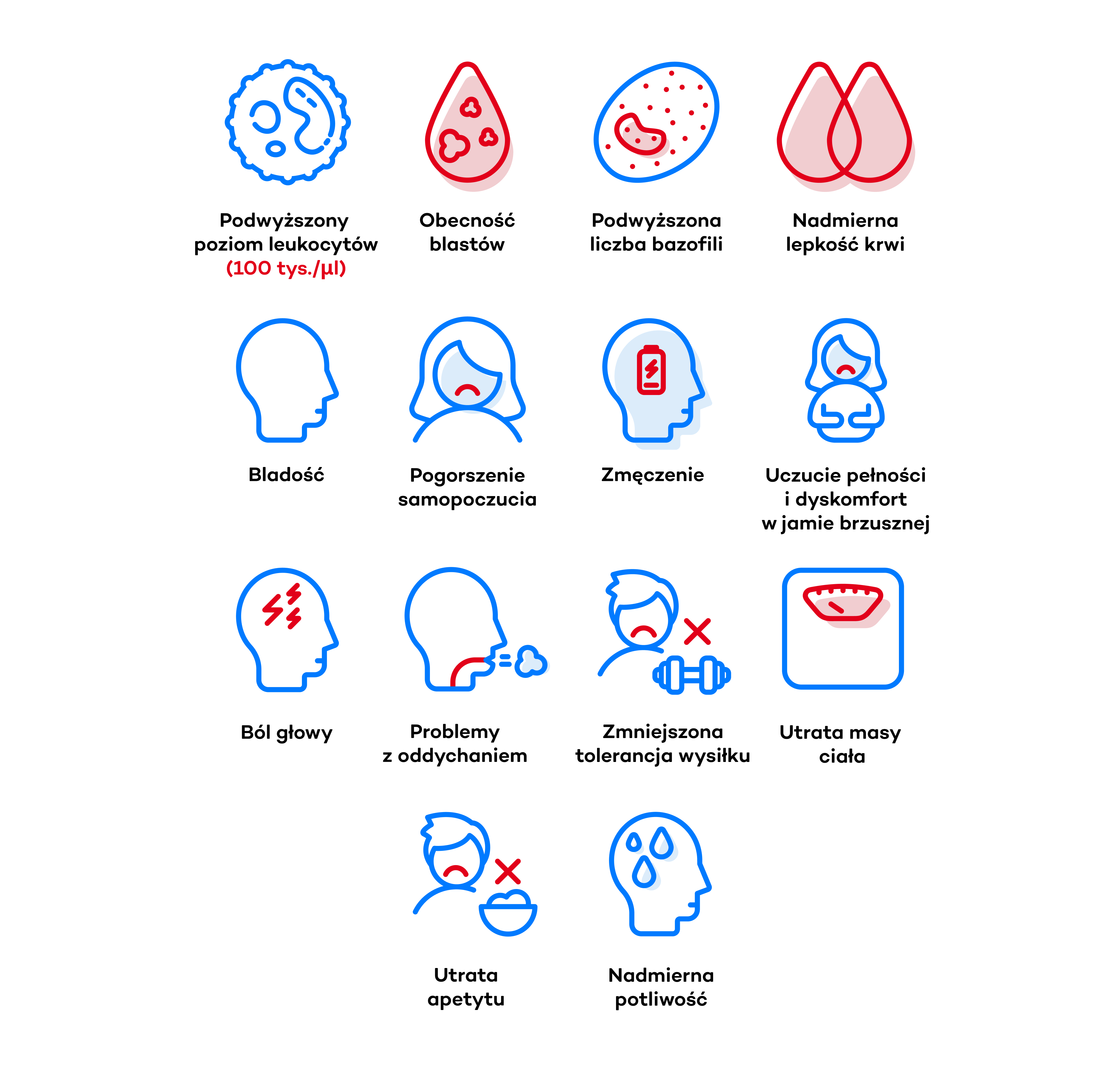 Inne objawy przewlekłej białaczki szpikowej to: