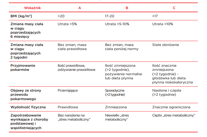 Każdy chory powinien mieć przeprowadzoną pełną ocenę stanu odżywienia już w momencie podejrzenia bądź rozpoznania nowotworu. Oceny stanu odżywienia może dokonać sam Pacjent, rodzina Pacjenta oraz personel medyczny.