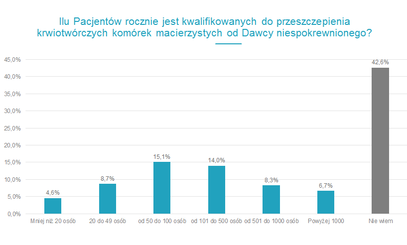 Każdego roku ponad 800 Pacjentów, zmagających się z chorobami układu krwiotwórczego, zostaje zakwalifikowanych do przeszczepienia krwiotwórczych komórek macierzystych od Dawcy niespokrewnionego - tzw. „bliźniaka genetycznego”. A na jakie liczby wskazywali respondenci, biorący udział w badaniu?