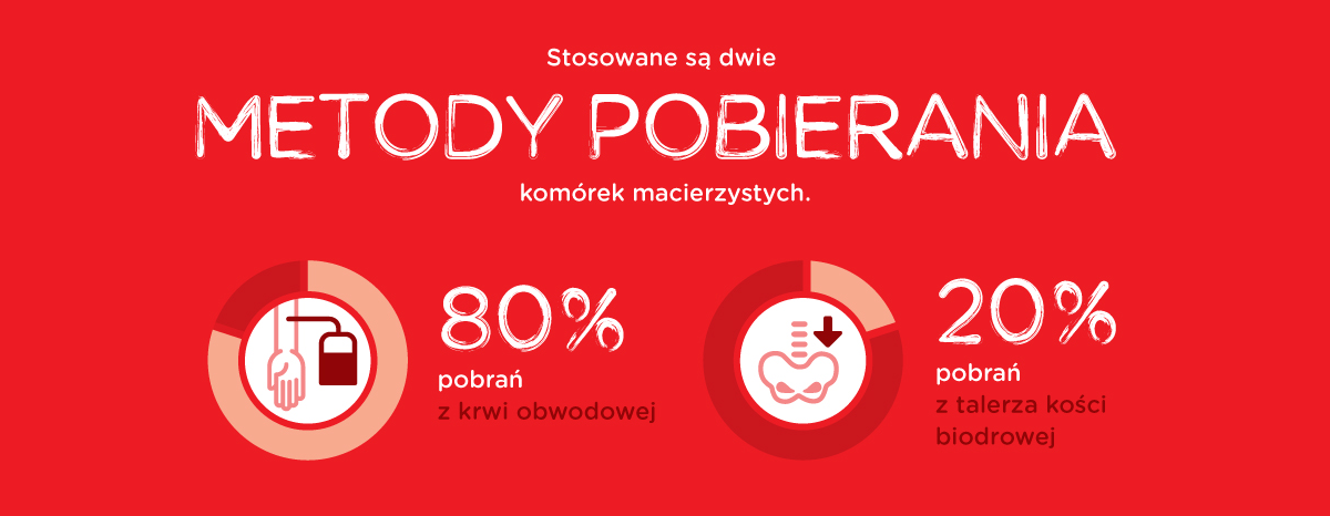 Istnieją dwie metody pobrania materiału od Dawcy – pierwszą z nich jest pobranie szpiku z talerza kości biodrowej, które odbywa się w znieczuleniu ogólnym i wymaga od Dawcy pozostania w klinice przez 24 godziny po donacji. Drugą – częściej stosowaną metodą, wykorzystywaną w aż w 80% pobrań - jest pobranie krwiotwórczych komórek macierzystych z krwi obwodowej, za pomocą specjalnego urządzenia (separatora). Zabieg ten odbywa się bez znieczulenia ogólnego, przypomina oddanie krwi i trwa ok. 5. godzin, po których Dawca wraca do domu. Obie metody są bezpieczne dla Dawcy, a o zastosowaniu konkretnej z nich zawsze decyduje lekarz prowadzący Pacjenta, uwzględniając kondycję i potrzeby chorego.