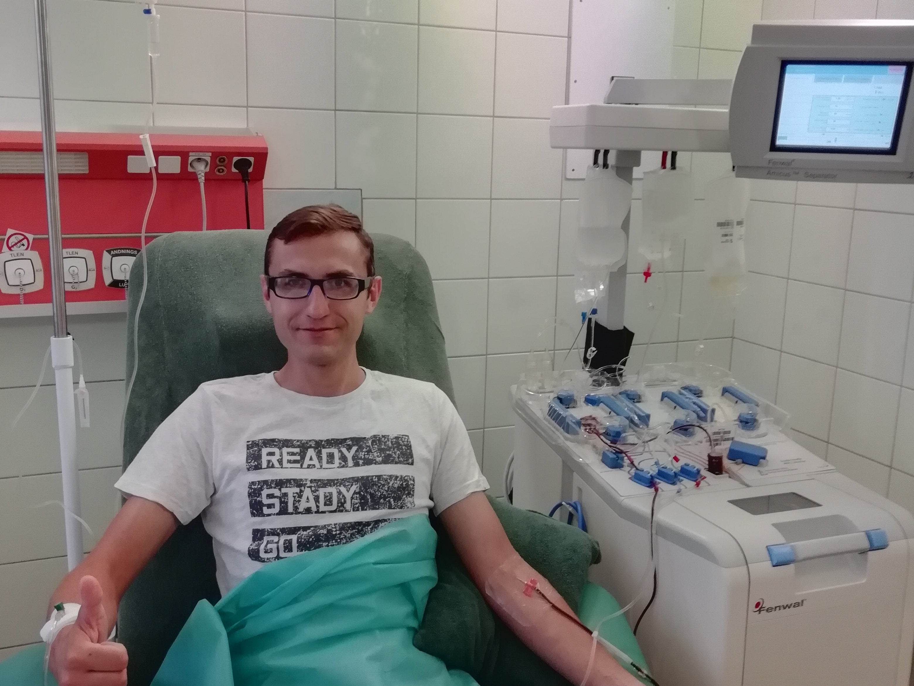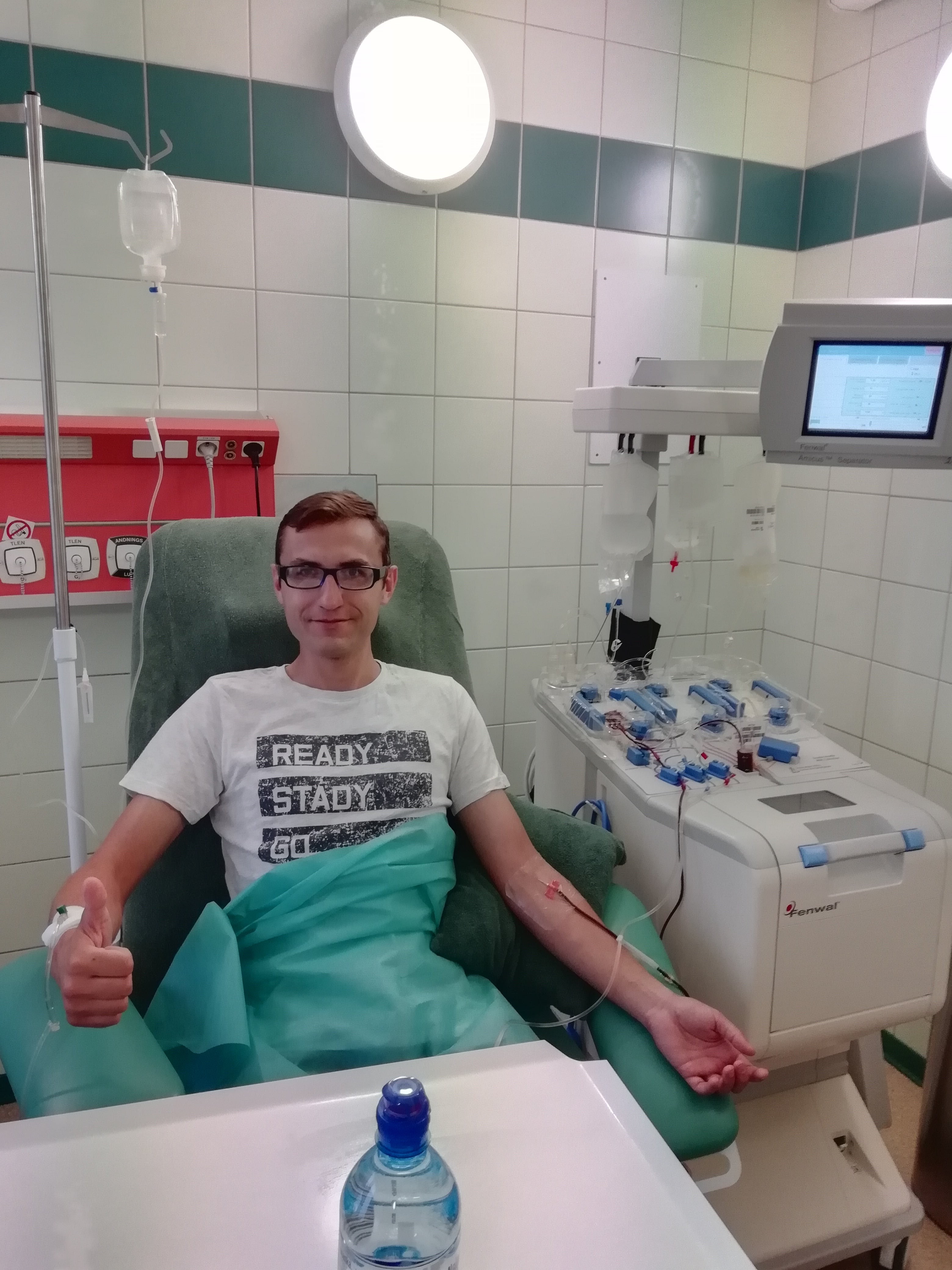 Koordynatorka z DKMS przedstawiła się i podała powód, dla którego do mnie zadzwoniła. Zapytała czy na przełomie tych kilku lat nie rozmyśliłem się i czy jestem gotów komuś pomóc. Naturalnie odpowiedziałem, że „tak, w końcu to miałem na celu rejestrując się“. Zostałem zakwalifikowany jako dawca szpiku z krwi obwodowej. Data zabiegu została wyznaczona na wrzesień 2018 roku w jednej z warszawskich klinik. Kilka dni przed zabiegiem zacząłem przyjmować niezbędny lek, który wywoływał bóle głowy i kręgosłupa, ale skutki uboczne łagodził lek przeciwbólowy. W dzień zabiegu przesiedziałem na fotelu prawie 7 godzin, ale w miłym towarzystwie pielęgniarek i innego dawcy z fotela obok, ten czas szybko zleciał. Niedługo po zakończonym zabiegu dowiedziałem się, że została zebrana wymagana ilość szpiku i mogę wracać do domu. Odetchnąłem z ulgą, że pewien etap na drodze powrotu do zdrowia mojego bliźniaka genetycznego jest zakończony, a teraz zaczyna się kolejny - myślę ten najważniejszy, czyli przekazanie szpiku. Teraz z niecierpliwością czekam na wieści o stanie zdrowia mojego biorcy i na to, że przeszczep się przyjął. Pozdrawiam, Artur.