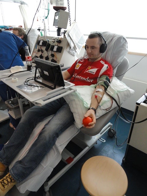 Pani Małgorzata wytłumaczyła mi wszystko bardzo szczegółowo, udzieliła odpowiedzi na wszelkie pytania. Następnie umówiła mnie na pobranie krwi do szpitala w moim mieście w celu wykonania szczegółowych badań. Następnie na początku marca 2013r. otrzymałem informację od pani Iwony Tomanek, że mam pełną zgodność z chorym i kolejne badania czekają mnie w klinice w Dreźnie. Dwa tygodnie później byłem już na miejscu, gdzie po raz kolejny przeprowadzono szczegółowe badania, w których towarzyszył mi pan Henryk Luchowski. Po kilku dniach otrzymałem wiadomość , że badania w klinice zakończyły się pozytywnie, lekarze nie widzieli żadnych przeciwskazań, bym mógł oddać komórki, dlatego po niedługim czasie zacząłem przyjmować Granocyte. Zastrzyki podawane były w brzuch, były zupełnie bezbolesne.