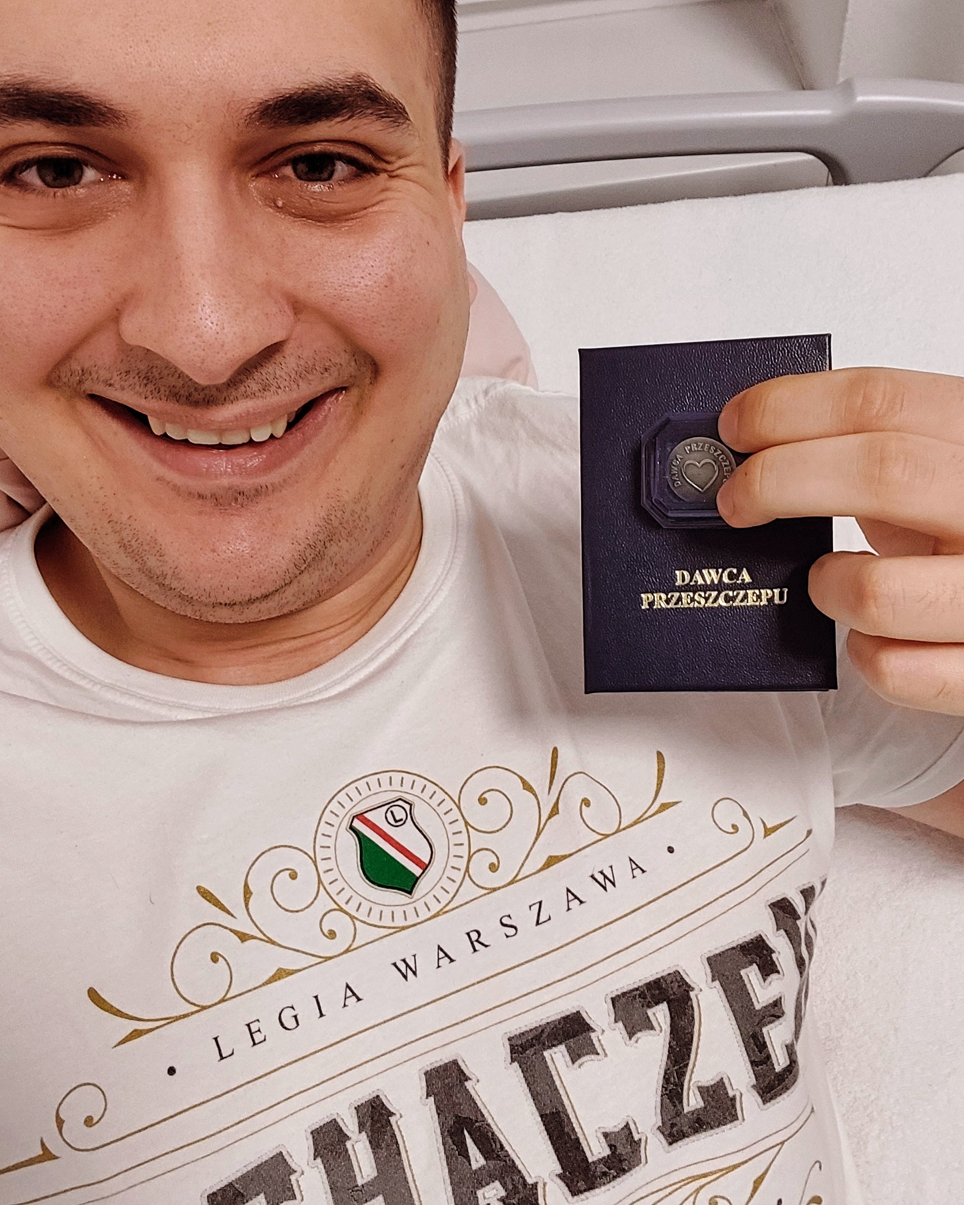W dzień pobrania przyszła do mnie pani doktor i powiedziała, jak mam się przygotować i że chwilę po godzinie 8:00 przyjdzie po mnie pani pielęgniarka i zabierze mnie na blok operacyjny. Gdy pojawiłem się już na bloku rozmawiałem z panią pielęgniarka i panem anestezjologiem w wesoły sposób. Następna rzeczą, która pamiętam było już obudzenie się na sali pooperacyjnej, była to ok. godzina 10.40. Nic nie odczuwałem, żadnego bólu i czułem się świetnie. Przed 12.00 zostałem przeniesiony na swoją sale. Bardzo dobrze się czułem byłem cały czas pod opieką personelu niczego się nie obawiałem, że mogłoby być coś nie tak. Na następny dzień przyszła pani doktor powiedziała, że oddałem 1200ml szpiku kostnego i wszystko przeszło zgodnie z planem podziękowaliśmy sobie wzajemnie. Pani doktor wręczyła mi odznakę i legitymację "Dawcy Przeszczepu". Ja nadal bardzo dobrze się czułem i pani powiedziała, że o 10.00 mogę się zbierać do domku. Ok. godziny 09.30 zdzwoniłem się z koordynatorem DKMS poinformował mnie, że pacjent, któremu pomogłem jest to starszy mężczyzna ze Stanów Zjednoczonych, byłem bardzo dumny i Pan koordynator uświadomił mnie jeszcze bardziej jaki gest wykonałem jak powinienem się czuć, jaki powinienem być dumny. Następnie poinformował mnie o dalszej procedurze. Zachęcam wszystkich którzy poznają moja historie jako już Faktycznego Dawcy Przeszczepu aby zapisali się do DKMS to naprawdę nic nie boli, nic nie kosztuje a może uratować komuś życie i pozwolić aby poczuć się dumnym z tego co się zrobiło. Pozdrawiam serdecznie wszystkich którzy są dawcami i którzy będą oraz wszystkich pracowników robicie na prawdę super robotę. Powodzenia