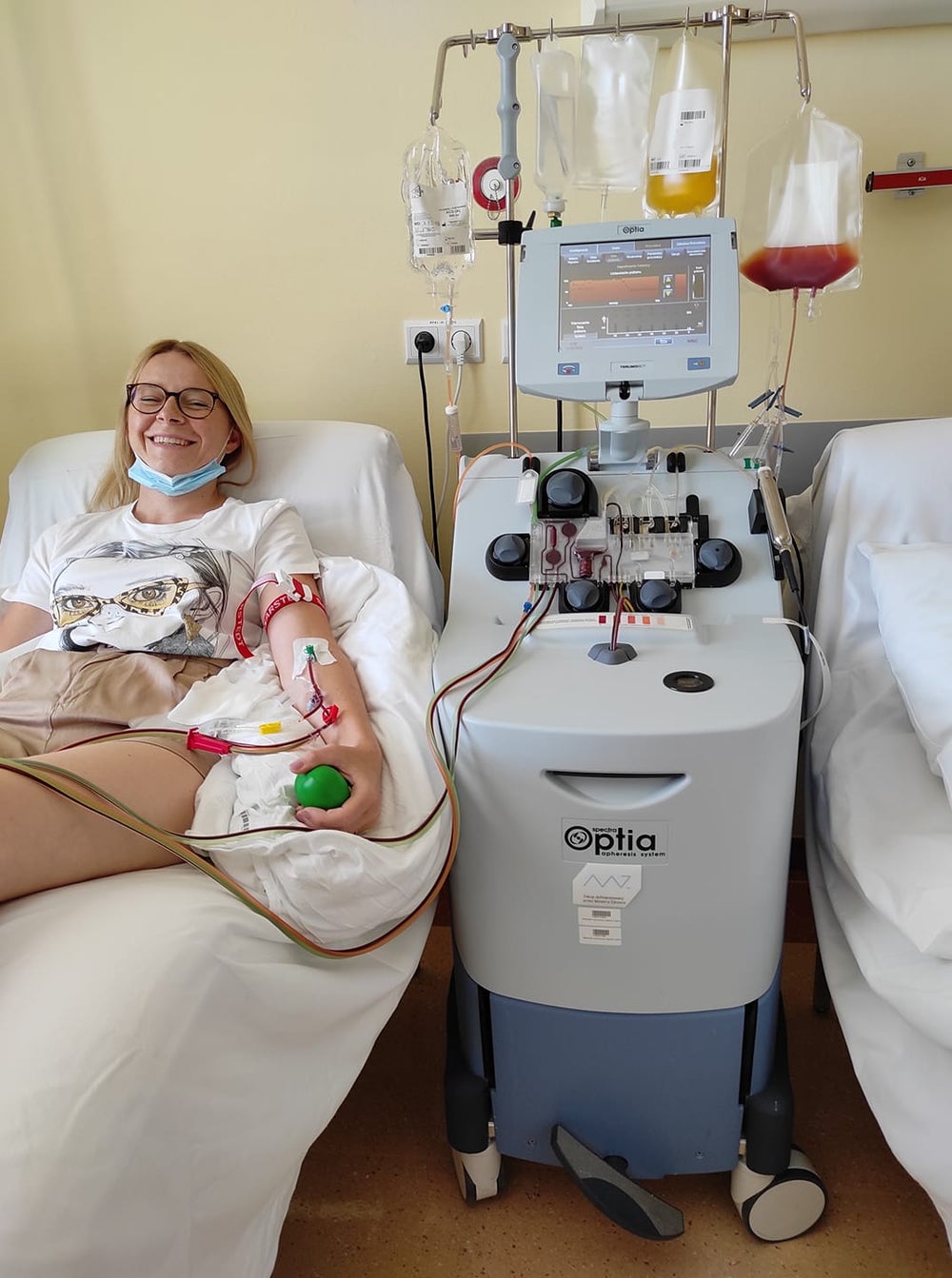 Wyniki badań pozwoliły na kolejne etapy procedury. Na cztery dni przed wizytą w szpitalu rozpoczęłam przyjmowanie zastrzyków w brzuch. Proces pobrania krwiotwórczych komórek macierzystych trwał w moim przypadku dwa dni po 5 godzin. Pokonałam swoje lęki i słabości, dzięki temu mój szpik powędrował do mężczyzny z Niemiec, który otrzymał swoją szansę.