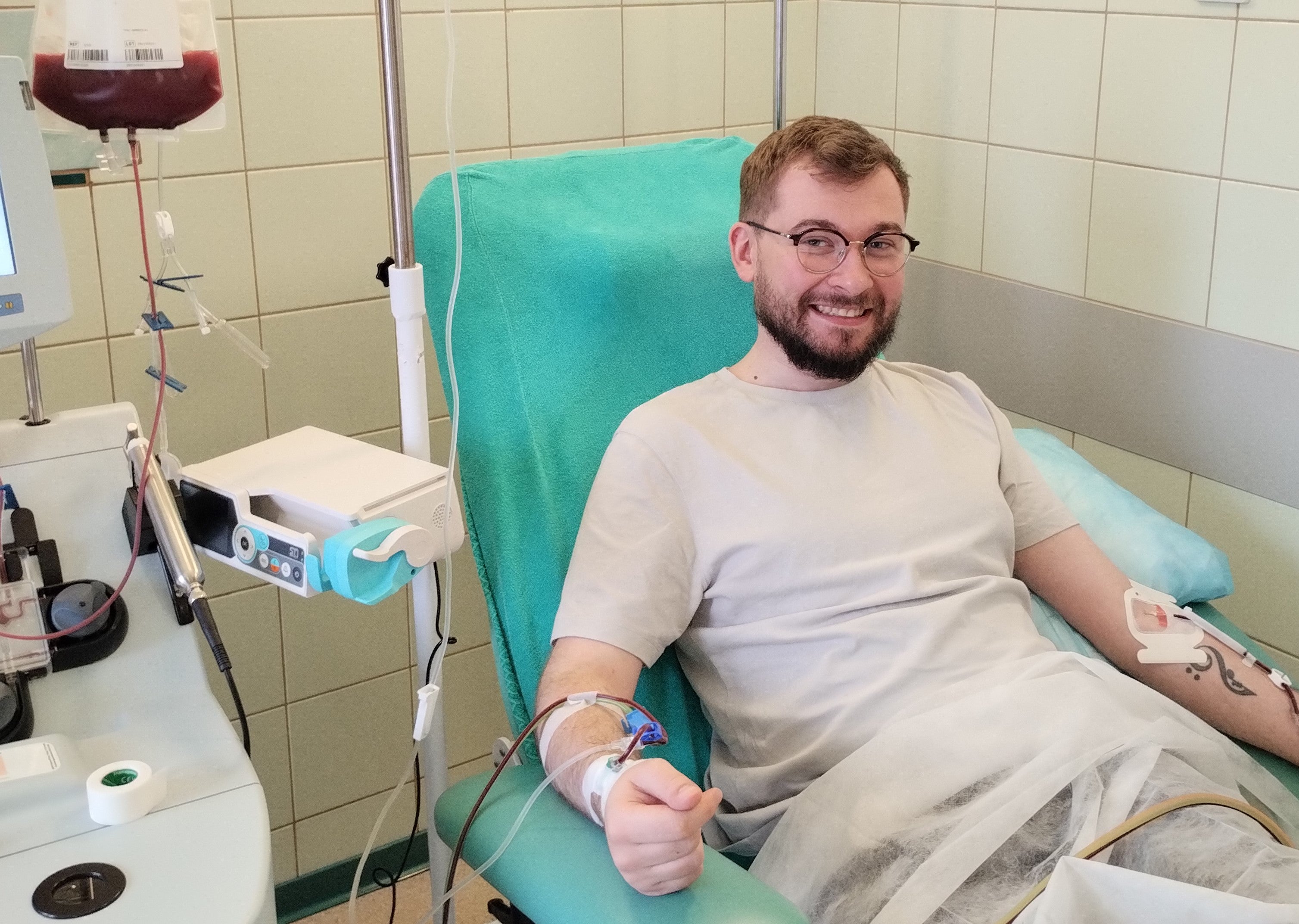 Zaledwie kilka miesięcy po dołączeniu do bazy jestem już dawcą faktycznym. Wiele osób zastanawia się czy sama procedura pobrania boli, odpowiadam z całą odpowiedzialnością, nie. A wiesz co zyskujesz? Zyskujesz fantastyczne uczucie ogromnej pomocy, komuś, komu jest ta pomoc niezbędna. Zyskać możesz również (tak, jak ja) świetną koleżankę z innego końca Polski, z którą byłem razem na badaniach, a i los zrządził tak, że razem byliśmy na pobraniu i ploteczkowaliśmy przez 5 godzin (Magda, ty wiesz, że to o Tobie haha).