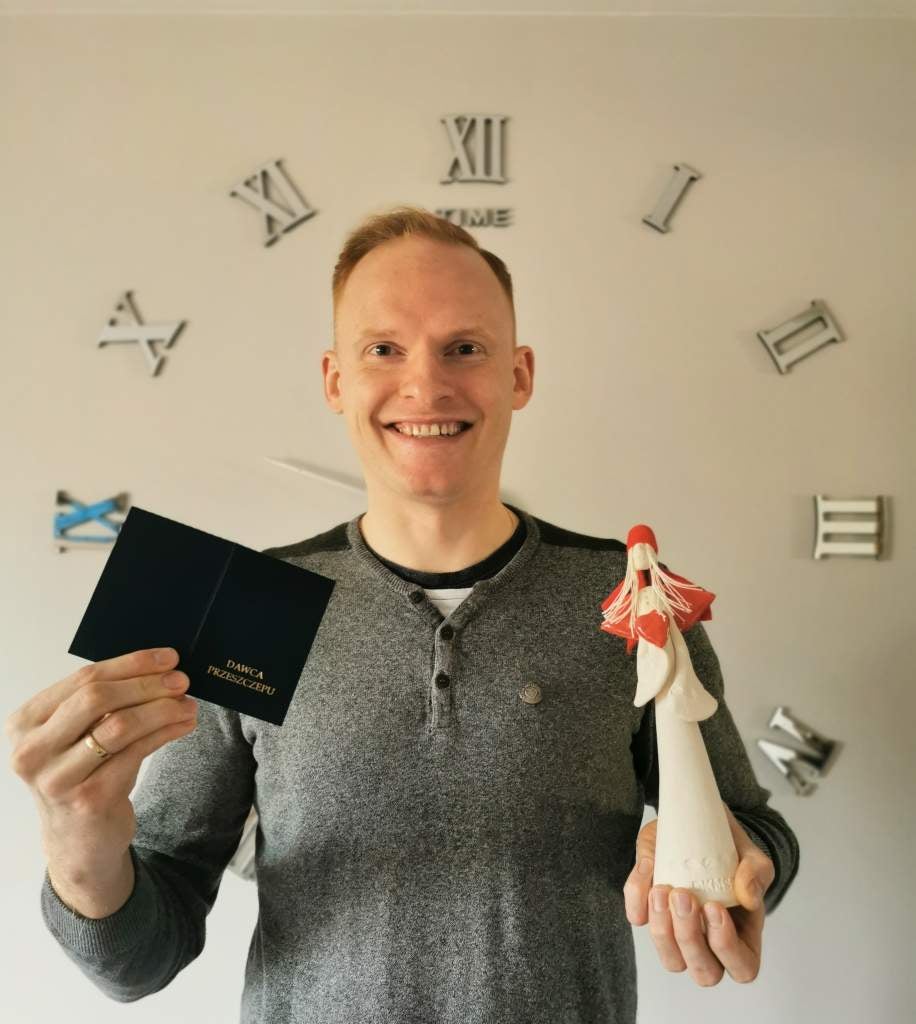 Ja informację od Fundacji DKMS o pomyślnym procesie rejestracji otrzymałem w połowie września, a 2 dni później telefon, że zostałem wytypowany dla konkretnego Biorcy – mojego "bliźniaka genetycznego". Akurat w ten dzień miałem zaplanowaną bardzo ważną rozmowę kwalifikacyjną do pracy jako kierowca autokaru mobilnego punktu pobrań w Krakowie. Byłem niesamowicie zaskoczony oraz przeszczęśliwy, że nie dość, że mogę dostać wymarzoną pracę to jeszcze mam okazję, dać komuś szansę na powrót do zdrowia i szansę na nowe życie. To był piękny dzień! Od tego momentu byłem perfekcyjnie prowadzony, przez wolontariuszy i pracowników DKMS, otrzymałem wszystkie niezbędne odpowiedzi, dzięki czemu ten „strach”, o którym wspomniałem na początku przerodził się w niezwykłą determinację i siłę by jak najlepiej zadbać o swoje zdrowie dla mojego "bliźniaka genetycznego" i by być odpowiednio przygotowanym na całą procedurę pobrania szpiku. Dodam także, że na początku wrześniu spotkał naszą rodzinę kolejny CUD bowiem, na świat przyszedł nasz kochany synek – Mikołaj.