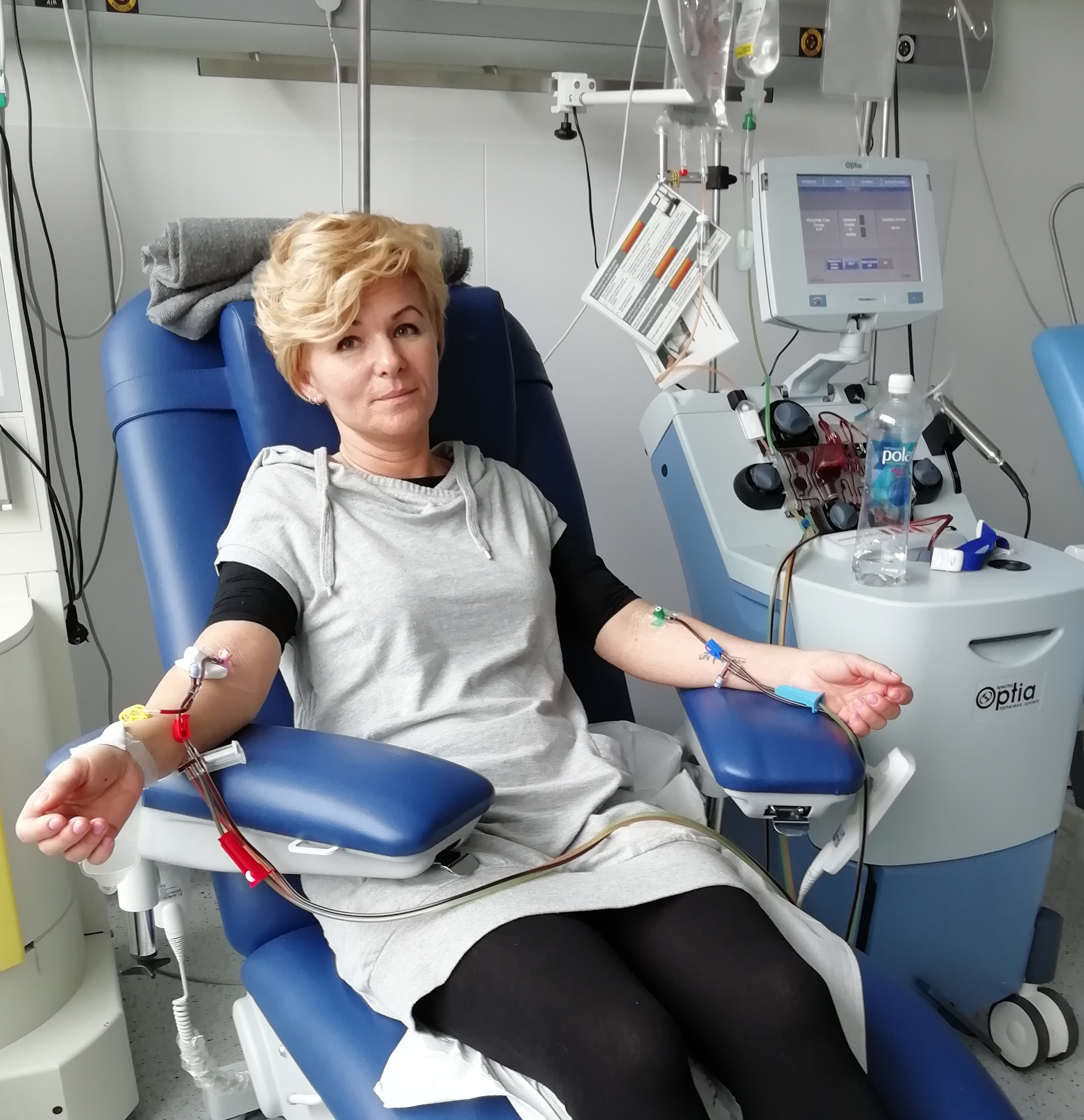 Niecierpliwie czekałam na telefon... zadzwonił pod koniec stycznia, stan się poprawił i mamy zgodę na przeszczep. Bez żadnego wahania stawiłam się na kolejne badania. Otrzymałam zastrzyki które miały pomóc na dalszym etapie przeszczepu, gdyż oddawałam z krwi obwodowej. Niestety mój organizm znosił dość opornie, jednak pomimo tych niedogodności wiedziałam, że walczę o życie dla kogoś. Zbiorka trwała dwa dni. Po wyjściu z szpitala, otrzymałam telefon z Fundacji. Pomogłam mężczyźnie z Polski! Trzymam mocno kciuki za Niego i jego walkę o zdrowie.