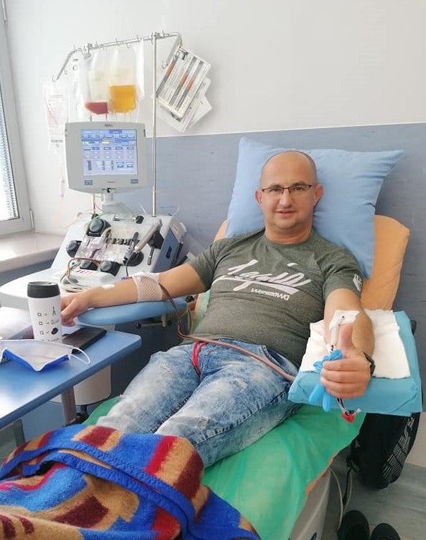 Wtedy też zarejestrowałem się wspólnie z narzeczoną w Fundacji DKMS, w lipcu tego roku otrzymałem telefon - mój "bliźniak genetyczny" potrzebuje pomocy! Nie wahałem się nawet sekundy. Po przeprowadzonych badaniach krwi, otrzymaniu informacji o zgodności, teście covid oraz całodniowym badaniu szczegółowym, stało się. We wrześniu oddałem moje komórki macierzyste Biorcy, aż zza wielkiej wody. Sześć miesięcy przed pobraniem urodził mi się syn. Mam wspaniałą partnerkę, syna, a teraz to szczęście, że mogłem w taki sposób komuś pomóc.