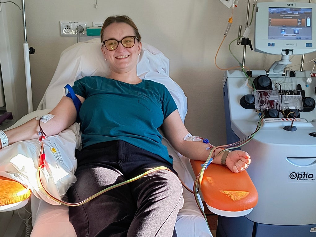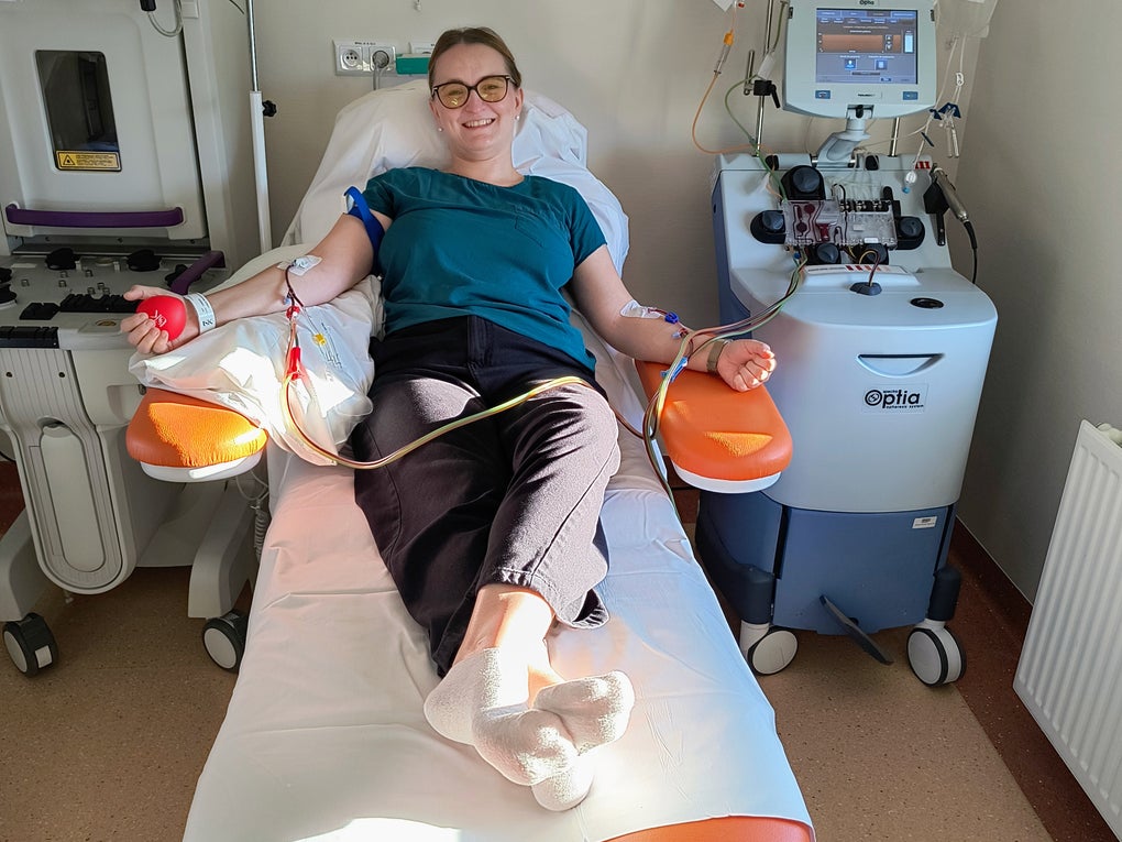 Kiedy poinformowano mnie, że będę mieć pobranie z krwi obwodowej, to trochę obawiałam się, że nie dam rady sama zrobić sobie zastrzyków, ale jak się okazało pozytywne nastawienie i determinacja to połowa sukcesu. Samo pobranie przebiegło w fantastycznej atmosferze, a po dwóch dniach siedzenia na fotelu i podziwiania pięknych jesiennych widoków za oknem mogłam z dumą przypiąć do klapy marynarki odznakę Dawcy Przeszczepu. Wiem, że mój brat bliźniak z Bałkanów przeszczepienie zniósł dobrze i bez większych powikłań wraca do zdrowia, i jest to dla mnie źródłem ogromnej radości.