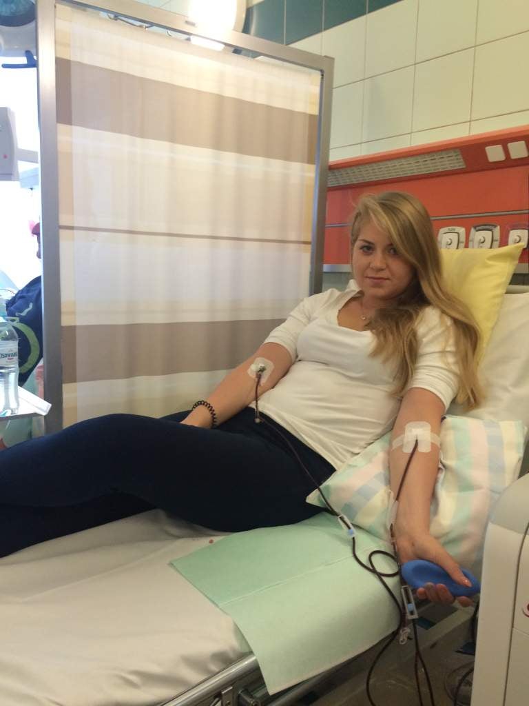 Czekałam aż do sierpnia 2015r. Byłam w tym czasie w trakcie wakacyjnej pracy, więc nie mogłam na początku odebrać telefonu, jednak kiedy dostałam sms oraz emaila z informacją, że Fundacja DKMS prosi o pilny kontakt, to od razu oddzwoniłam. Właśnie wtedy dowiedziałam się, że ktoś potrzebuje mojej pomocy, mój genetyczny bliźniak dzięki mnie ma szansę na przeżycie. Moja rozmowa z Panią Julią trwała ok. 30 min. W tym czasie wszystko zostało mi wyjaśnione, wytłumaczone i wstępnie uzgodnione. Przebywałam poza miejscem zamieszkania, ale nie było z tym żadnego problemu, ponieważ Fundacja zorganizowała badania krwi potwierdzające zgodność z pacjentem w miejscu mojego pobytu i to w bardzo krótkim czasie. Okazało się, że będę mogła oddać komórki macierzyste z krwi obwodowej. Byłam bardzo podekscytowana, nie mogłam uwierzyć, że mogę komuś dać szansę na nowe życie.