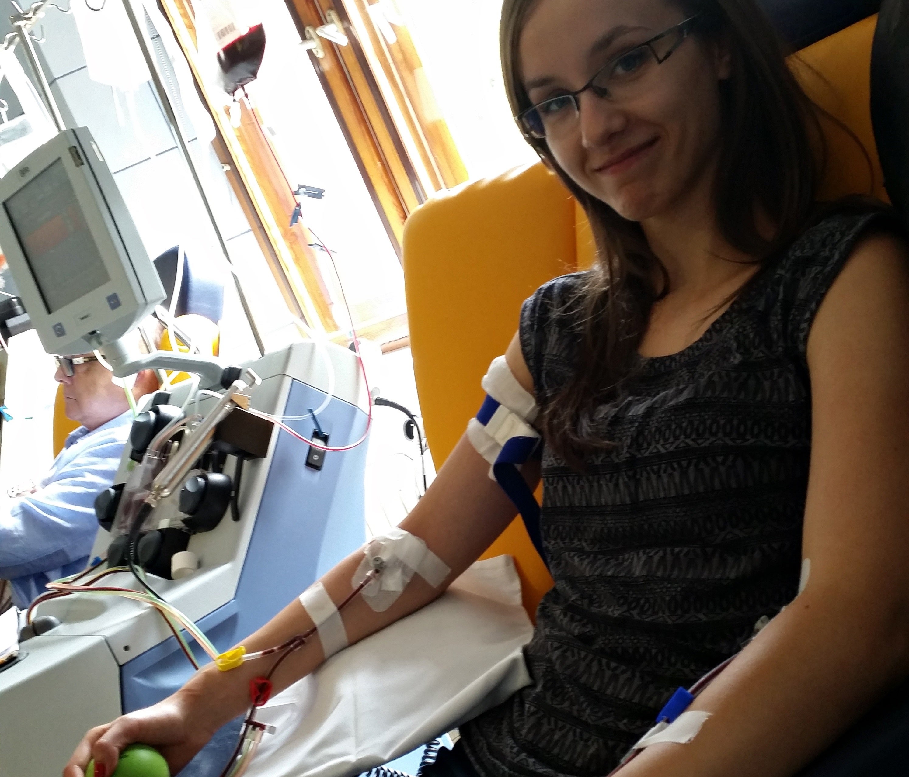 Po telefonie musiałam iść do przychodni w mojej miejscowości na pobranie krwi, ponowne sprawdzenie czy zgadzamy się z Biorcą. Na szczęście okazało się, że tak. Otrzymałam wszystkie informacje o badaniach wstępnych, które muszą odbyć się w Klinice pobrania. Dokładny opis procedur, informacje o hotelu, o metodzie pobrania... wtedy do mnie powoli docierało, że to wszystko dzieje się naprawdę, że muszę o siebie dbać, aby pomóc. To ogromna odpowiedzialność z mojej strony i bardzo ciężki czas dla Biorcy, który jest przygotowywany do przeszczepu. Na badanie wstępne musiałam się zgłosić 3 tyg. przed wyznaczoną datą pobrania. Zostałam przebadana od A do Z. Na koniec miałam spotkanie z lekarzem prowadzącym oraz pielęgniarką. Lekarz potwierdził, że pobranie odbędzie się metodą separacji. Dostałam rozpiskę oraz instrukcję jak podawać sobie zastrzyki z czynnikiem wzrostu, które musiałam przyjmować na 4 dni przed pobraniem. Miałam lekkie obawy, ale na szczęście było to banalne do wykonania. Czułam się dobrze, mogłam normalnie funkcjonować. Dokuczał mi jedynie ból pleców i nóg.