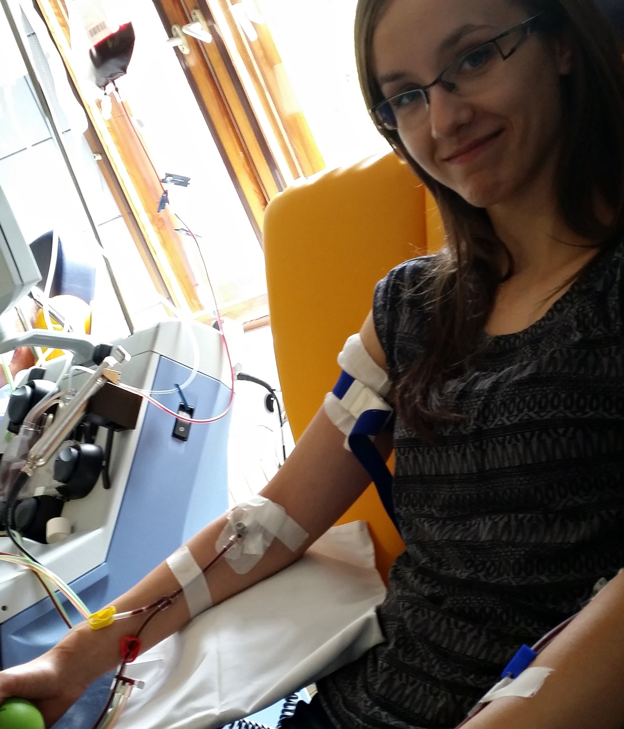 W hotelu musiałam być dzień przed pobraniem, aby odpoczywać i zbierać siły. Rano zrobiłam ostatni zastrzyk, po którym można było jechać do szpitala i walczyć dla Bliźniaka. Wszyscy czekali jak na jakąś ważną osobistość, całkiem przyjemne uczucie :) Panie pielęgniarki, które opiekowały się mną podczas pobrania służyły niezmiennie przez 4 godziny uśmiechem i pomocą. Pobranie polegało głównie na .... siedzeniu i cierpliwości. Na szczęście cały czas towarzyszył mi mój ukochany, który podtrzymywał mnie na duchu :) Byłam podłączona do maszyny, która pobierała krew, wirowała i odseparowywała komórki macierzyste - "komórki życia". Krew była pobierana z żyły prawej ręki i po całym procesie wracała lewą. Pobranie trzeba było powtórzyć kolejnego dnia, ponieważ komórek było za mało... lekko podłamana wróciłam do hotelu, jednak z pełnym przekonaniem, że muszę pomóc i się uda! Nie mogę zawieść tej drugiej osoby, która czeka i liczy na mnie. Bliźniaku, cały czas o Tobie myślałam i martwiłam się o Ciebie :) Na szczęście drugiego dnia zebrano wystarczającą liczbę komórek!