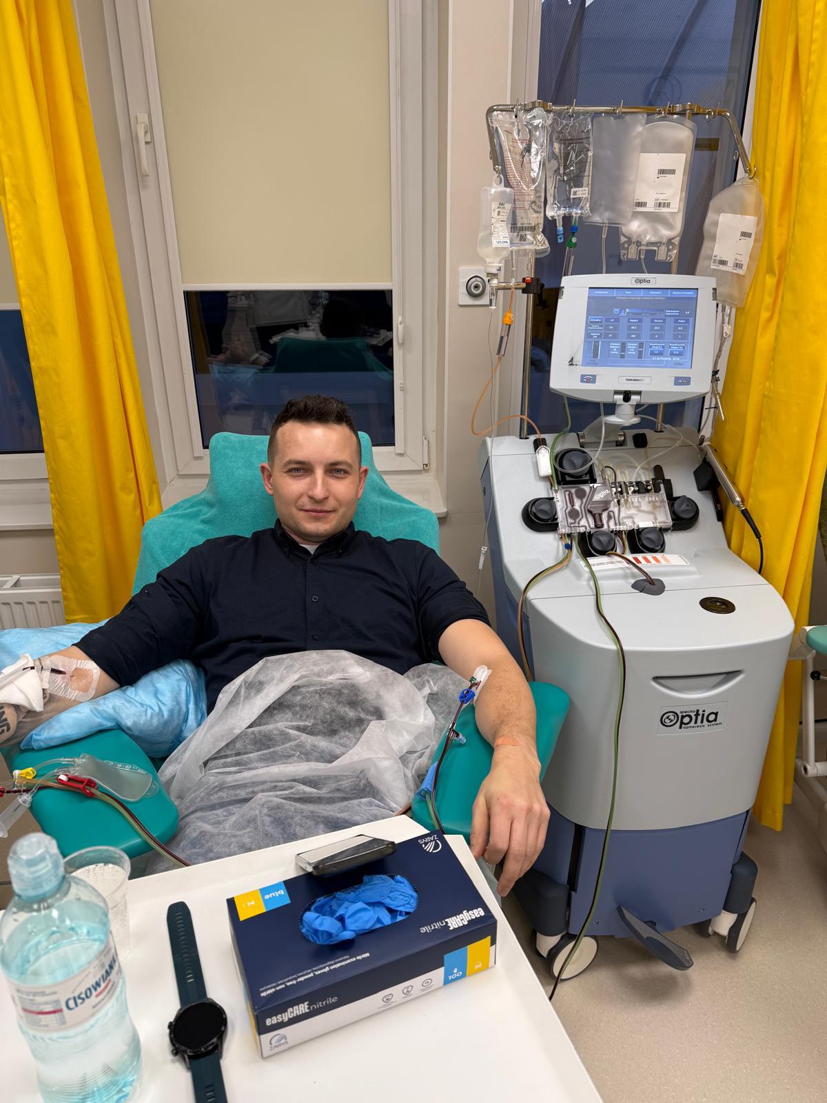 Dzień 31 maja zapamiętam na zawsze, zadzwonił telefon "Twój bliźniak genetyczny potrzebuje pomocy" - usłyszałem. Bez wahania przystąpiłem do procedury. Po szeregu bezbolesnych badań oraz przyjęciu dawek czynnika wzrostu komórek macierzystych dołączyłem do grona dawców. Pobranie trwało około 5 godzin pod nadzorem wykwalifikowanego personelu szpitala. Tylko albo aż 5 godzin, aby uratować komuś życie.