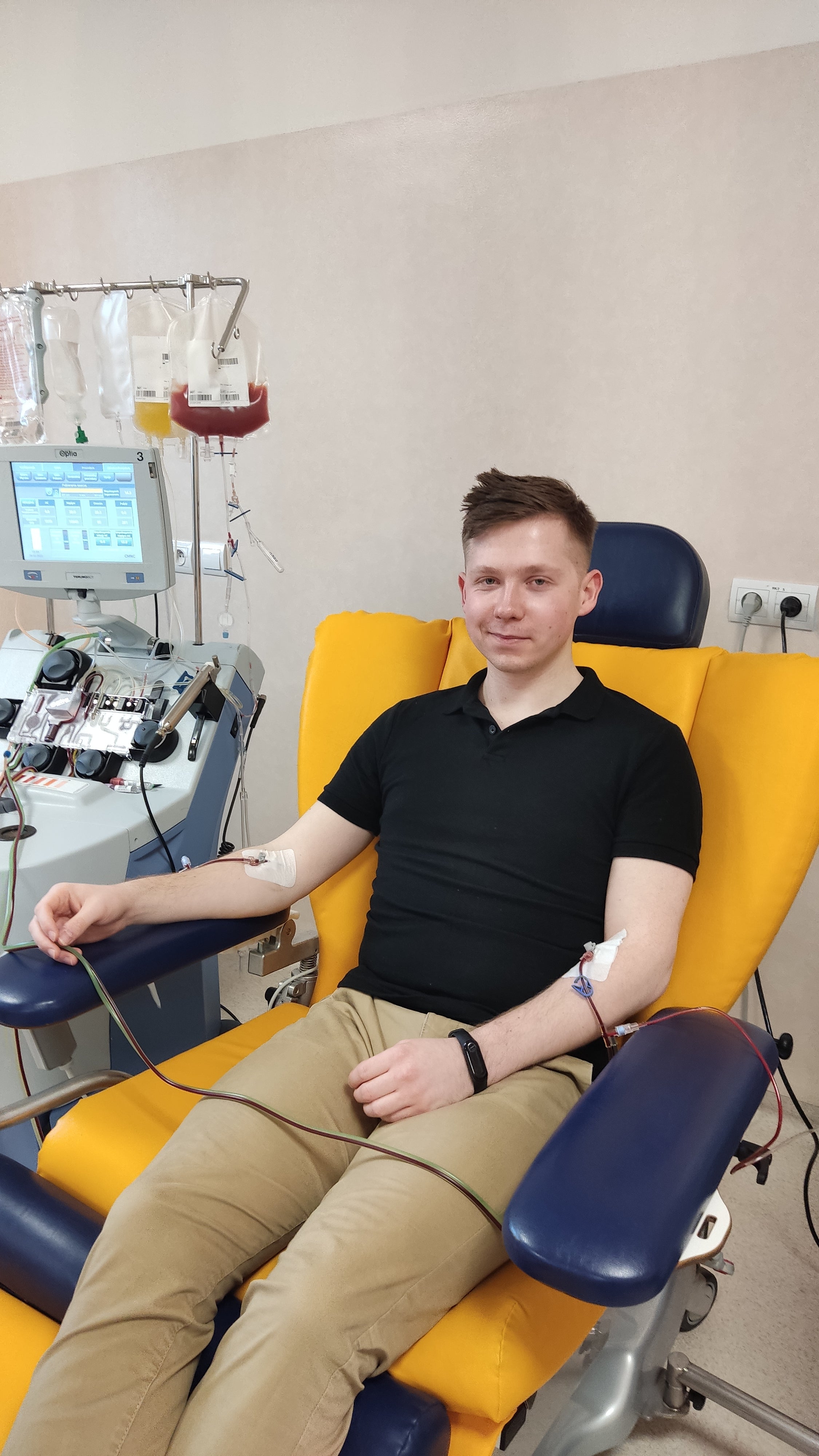 Zdecydowano, że komórki macierzyste zostaną pobrane z krwi obwodowej, dlatego przez kilka poprzedzających dni, rano i wieczorem, musiałem aplikować sobie tzw. czynnik wzrostu, który mobilizował te komórki do przedostania się ze szpiku do krwi. Były obawy przed robieniem sobie zastrzyków, lecz minęły po pierwszej próbie.Samo pobranie trwało w moim przypadku ponad 5 godzin, lecz wszystko odbyło się w miłej i pozytywnej atmosferze.