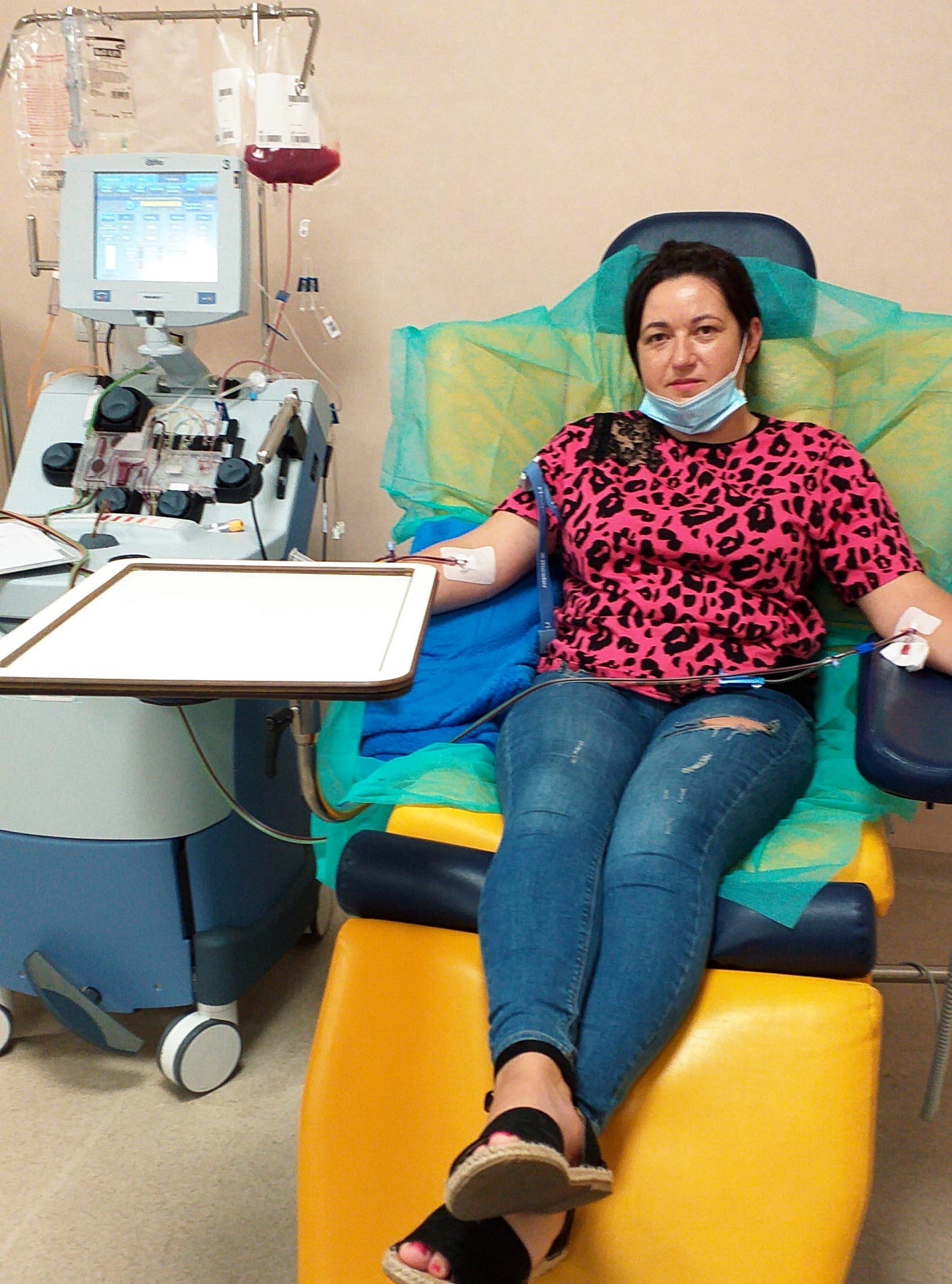 Pierwsze pobranie krwi (potwierdzenie zgodności), potem wizyta w klinice, gdzie zostałam przebadana od stóp do głów (USG, RTG, EKG, 25 fiolek krwi do dalszych badań, itd.). Wyniki nie wykazywały przeciwwskazań do zabiegu, a więc do pobrania komórek macierzystych, było już coraz bliżej. Pobranie miało odbyć się poprzez metodę aferezy krwi obwodowej.