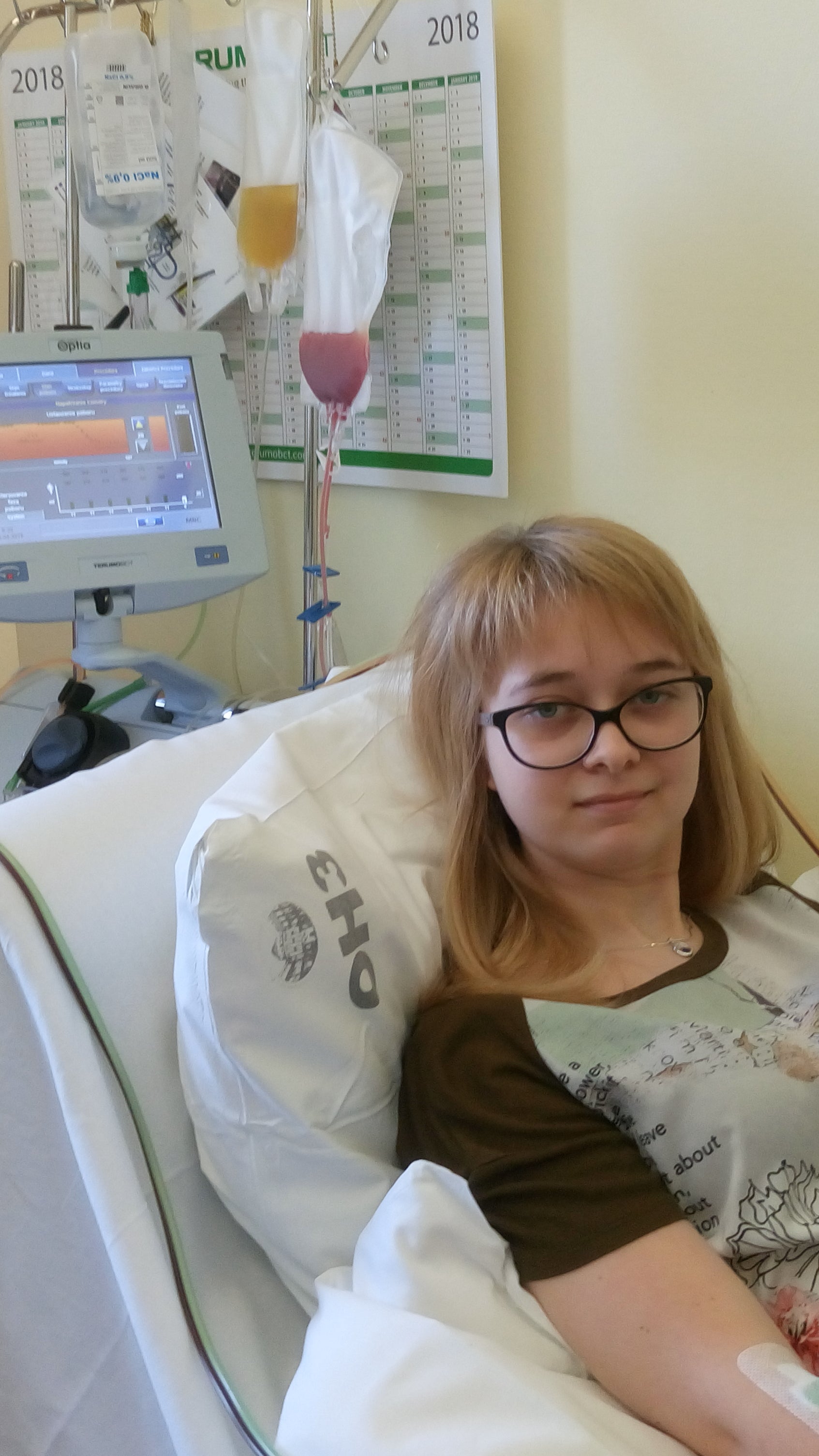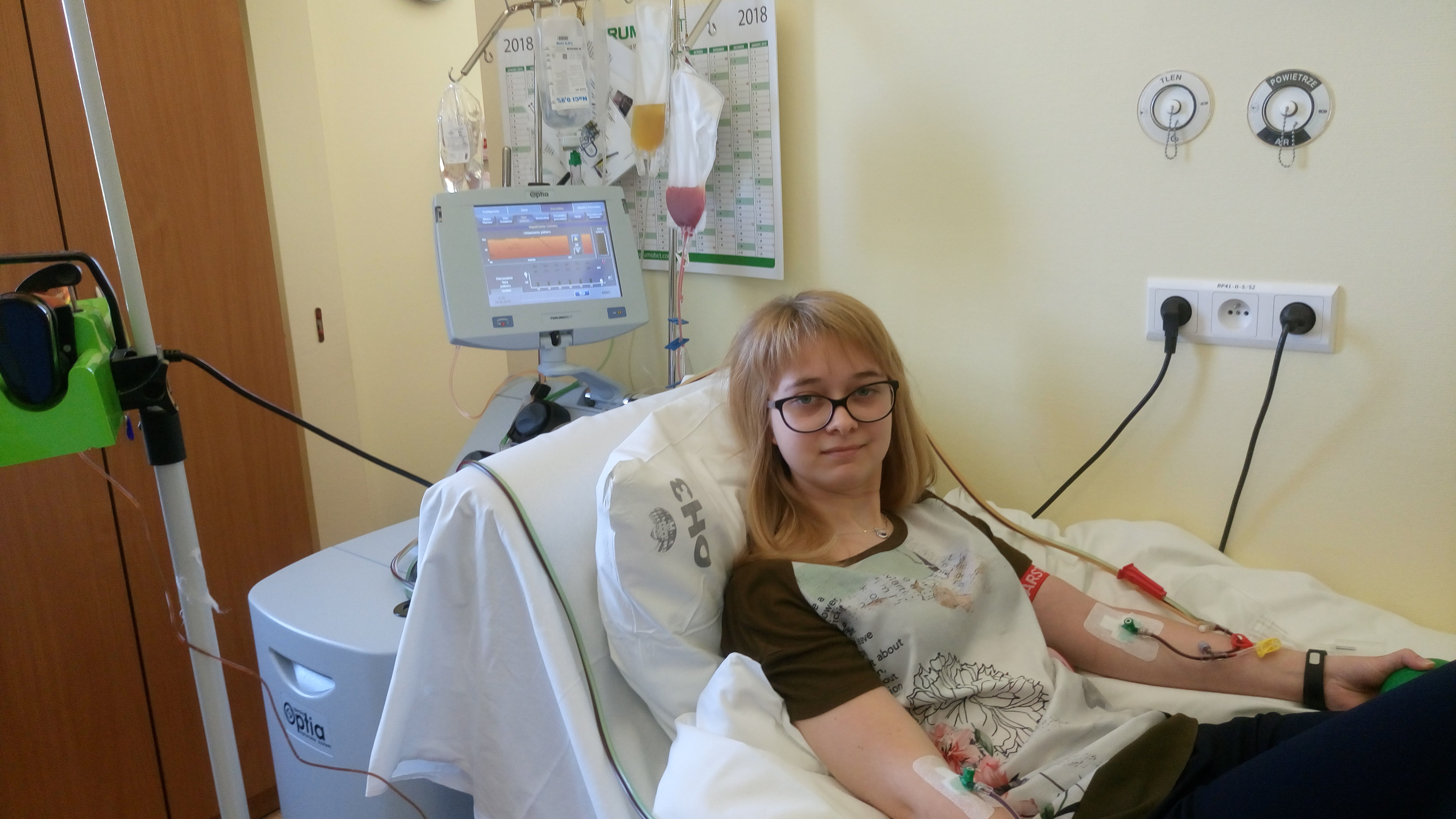 Po kilku dniach wróciłam do kliniki na pobranie. Zabrałam ze sobą osobę towarzyszącą, ale nie we wszystkich klinikach jest możliwość, by osoba ta mogła być obecna podczas pobrania. Na początku zbadano mi znowu krew i po odebraniu wyników po kilkunastu minutach podłączono mnie do maszyny, która pobierała mi krew. Działo się to prawie tak samo jak oddaje się ją honorowo. Różnica polegała w zasadzie tylko na tym, że w drugiej ręce miałam założony drugi wenflon, którym krew wracała. Pielęgniarki były miłe, żartowały, przyszła mnie zobaczyć również pani doktor, która oznajmiła, że być może czeka mnie jeszcze jeden dzień pobrania. Cały ten czas po prosu wygodnie sobie leżałam okryta kocykiem. Towarzyszyły mi takie emocje, że nie odczuwałam żadnego bólu. Pielęgniarka przyniosła termofor pod rękę z której krew wypływała, żeby rozluźniła się żyła. Zrobiło mi się miło i ciepło, nawet na chwilę się zdrzemnęłam. Samo pobranie trwało ok 4 może 5 godzin. Nie wiedziałam do końca czy wystarczy tych komórek macierzystych i myślami już szykowałam się na kolejny dzień. Na szczęście okazało się, że zebrano wymaganą przez klinikę biorcy ilość materiału.