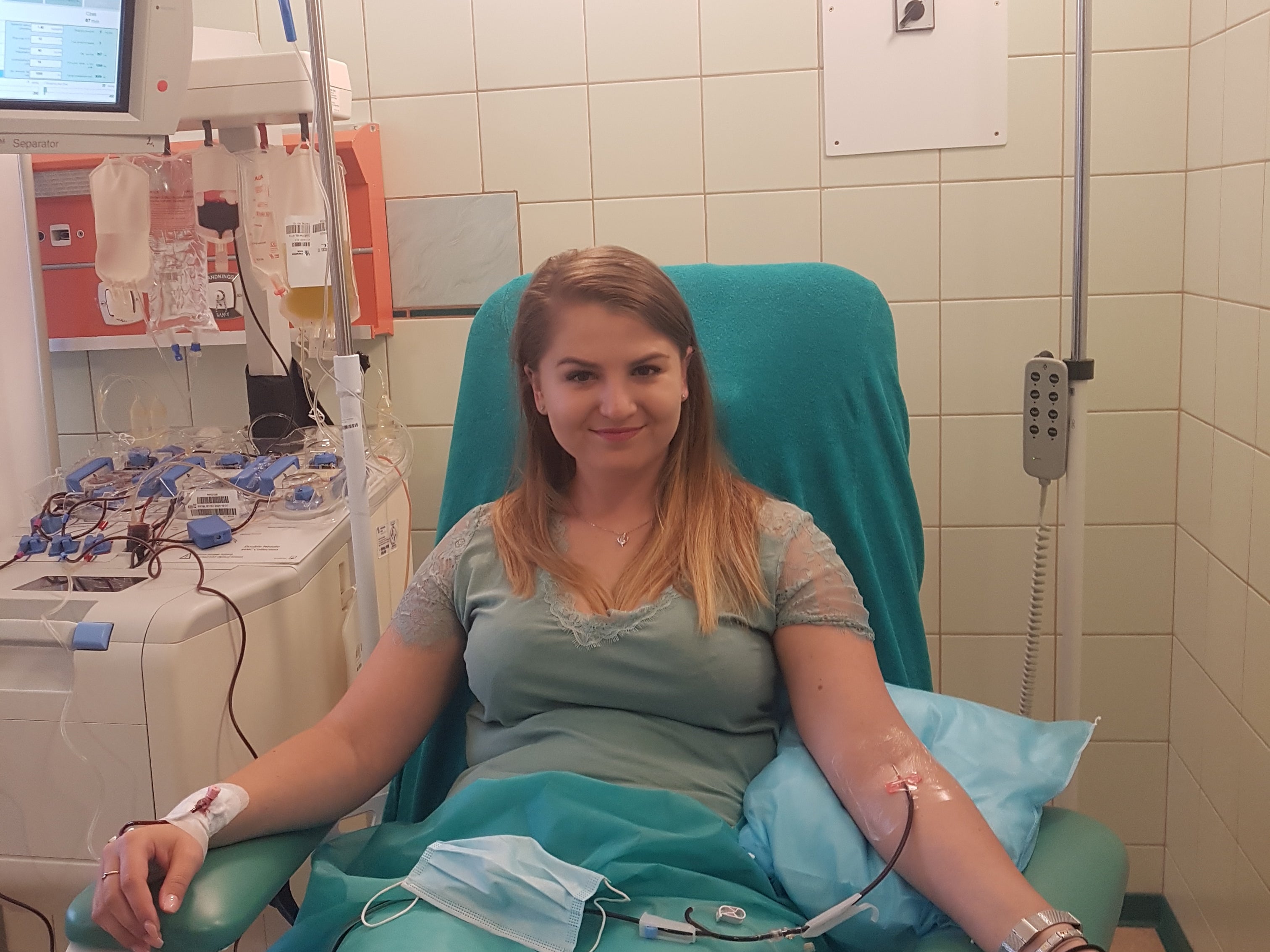 W dniu pobrania przybyłam do kliniki na godz. 7:00. Przemiła pani pielęgniarka towarzyszyła mi podczas całego zabiegu. Sam proces oddawania nie był bolesny, to tylko dwa wkłucia. Przepływ krwi nie jest praktycznie odczuwalny. Informację, o tym, że moje komórki macierzyste właśnie jadą do chorego w Szwajcarii, otrzymałam jeszcze tego samego dnia.