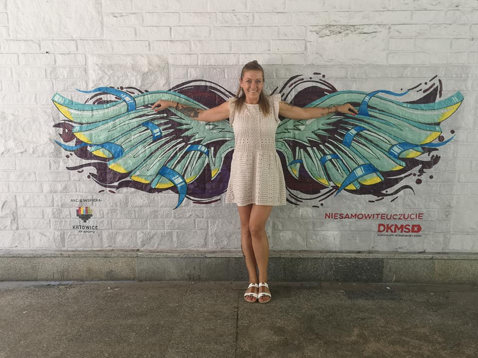 Prowadzimy także kanał w serwisie YouTube, gdzie można oglądać filmy z naszych akcji. Jako wolontariusze stworzyliśmy gadżety promujące Fundację DKMS jak np. tabliczki z logo wykorzystywane do zdjęć w foto budkach, naklejki na samochody i wiele innych. Zainicjowałam również powstanie dwóch murali- skrzydeł Fundacji DKMS w Katowicach i Tychach.