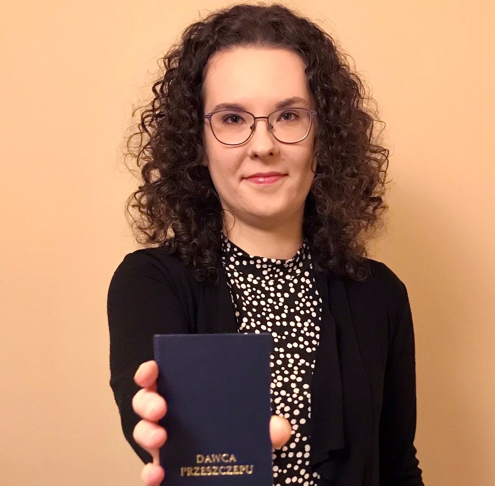 Na moje 30 urodziny otrzymałam niezwykły prezent, który rozpoczął się na krótko przed dniem urodzin- odebrałam telefon od Fundacji DKMS. Po 8 latach od rejestracji mój bliźniak genetyczny potrzebował pomocy. Tydzień później przeszłam badania, które potwierdziły zgodność oraz to, że jestem zdrowa i mogę zostać dawczynią komórek macierzystych. Kilka tygodni później dostałam informacje odnośnie planowanego dnia pobrania oraz daty szczegółowych badań, które odbywają się na dwa tygodnie przed planowanym zabiegiem i weryfikują stan zdrowia potencjalnego dawcy. W moim przypadku lekarze zdecydowali, że pobranie szpiku kostnego nastąpi z talerza kości biodrowej. Wiązało się to z krótkim pobytem w szpitalu, jednak cała procedura przebiegła sprawnie i prawie bezboleśnie. Wiele osób pytało czy nie boje się pobrania- nie, ponieważ od początku czułam wielkie wsparcie i opiekę ze strony Fundacji DKMS oraz lekarzy i pielęgniarek ze szpitala, w którym odbyło się pobranie. Najbardziej stresującą dla mnie kwestią było to czy faktycznie jestem zdrowa oraz to żeby ten stan utrzymać do dnia pobrania. Wszystko poszło zgodnie z planem i dziś już wiem, że jeszcze w dniu pobrania mój szpik poleciał do Anglii dla dziewczynki w wieku do lat 5.