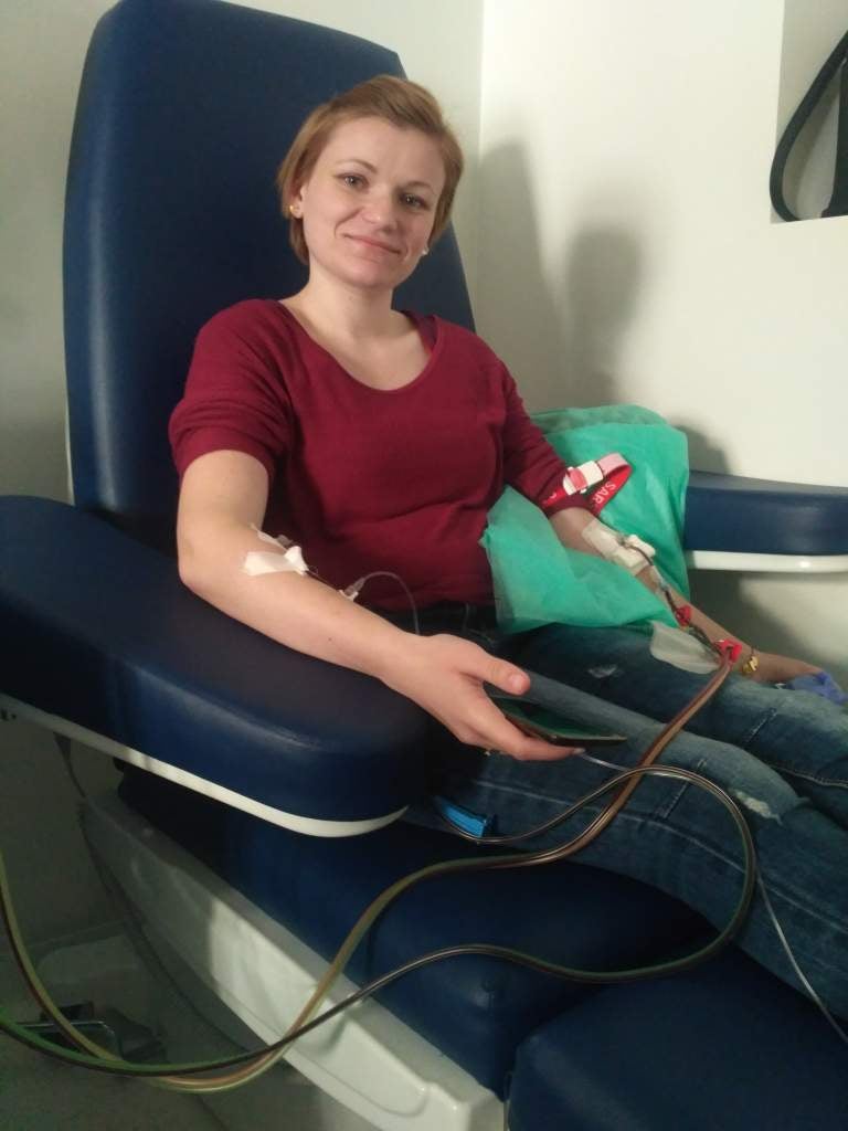 Wszystko zaczęło się od maila: "została Pani wytypowana jako zgodna z konkretnym pacjentem...". Zaraz po tym był telefon z Fundacji z zapytaniem czy nadal chcę zostać dawcą oraz ze szczegółowymi informacjami jak by to miało wyglądać. Po potwierdzeniu mojej gotowości , fundacja umówiła mnie na pobranie krwi we wskazanej przeze mnie placówce. Po równych trzech tygodniach dostałam wiadomość, że wszystko jest ok i możemy się umówić do kliniki pobrania na bardziej szczegółowe badania wstępne oraz na sam zabieg. Wtedy też dowiedziałam się, że będzie to robione metodą poboru komórek macierzystych z krwi obwodowej. W skrócie opisując: z jednej ręki krew wypływa by specjalistyczny sprzęt mógł wybrać sobie komórki macierzyste, a następnie taka "odwirowana" krew wraca drugą ręką. Nic strasznego i nic bolesnego. Żadnego grzebania w kręgosłupie! Na badaniach wstępnych zostałam także poinstruowana jak przyjmować tzw. czynnik wzrostu, odpowiedzialny za namnażanie komórek macierzystych w moim organizmie.