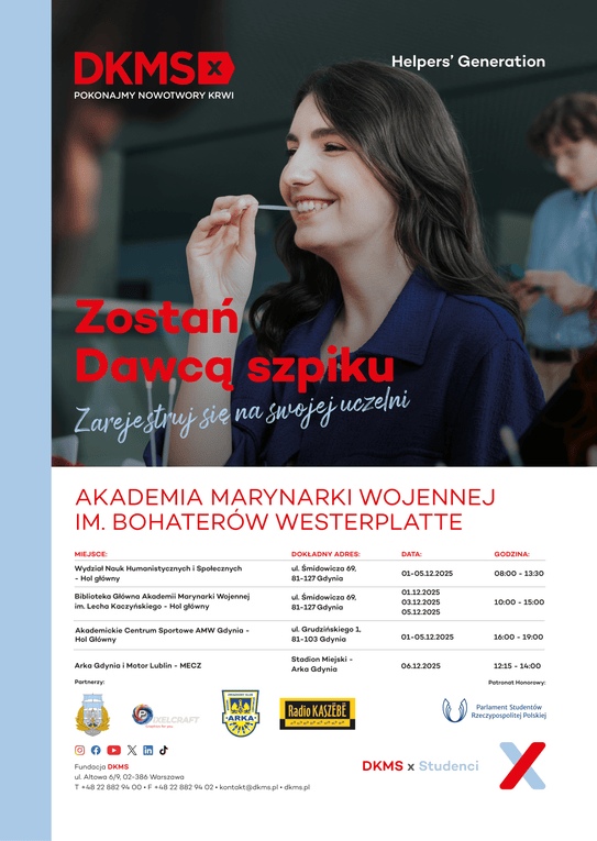 Studenci z całej Polski ponownie łączą siły, by dać chorym na nowotwory krwi szansę na życie. 💪 Dzięki tej niesamowitej inicjatywie, wspólnie z Fundacją DKMS, udało się zarejestrować już niemal 180 tys. potencjalnych Dawców.