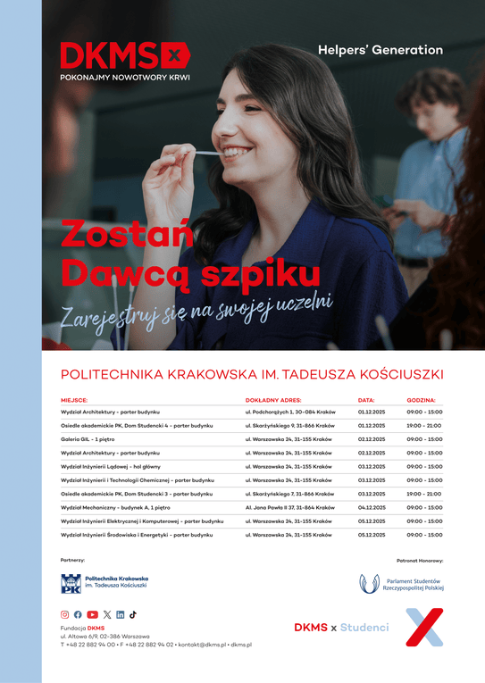Studenci z całej Polski ponownie łączą siły, by dać chorym na nowotwory krwi szansę na życie. 💪 Dzięki tej niesamowitej inicjatywie, wspólnie z Fundacją DKMS, udało się zarejestrować już niemal 180 tys. potencjalnych Dawców.