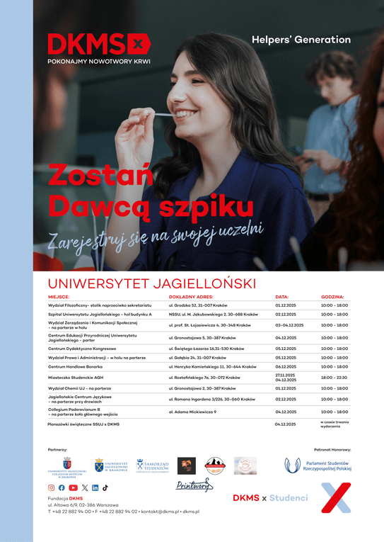 Studenci z całej Polski ponownie łączą siły, by dać chorym na nowotwory krwi szansę na życie. 💪 Dzięki tej niesamowitej inicjatywie, wspólnie z Fundacją DKMS, udało się zarejestrować już niemal 180 tys. potencjalnych Dawców.