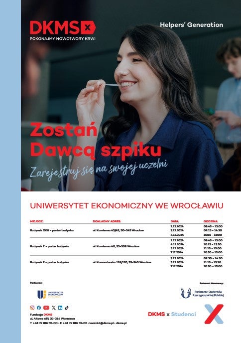 Przed nami odsłona jesienna XVI edycji projektu studenckiego HELPERS’ GENERATION! 🎓❤️ Studenci z całej Polski łączą siły w walce z nowotworami krwi, a ich dotychczasowa ponad 10-letnia współpraca z Fundacją DKMS poskutkowała rejestracją 163 000 nowych potencjalnych Dawców. Już w grudniu na 57 uniwersytetach odbędą się akcje rejestracji do bazy Fundacji DKMS!