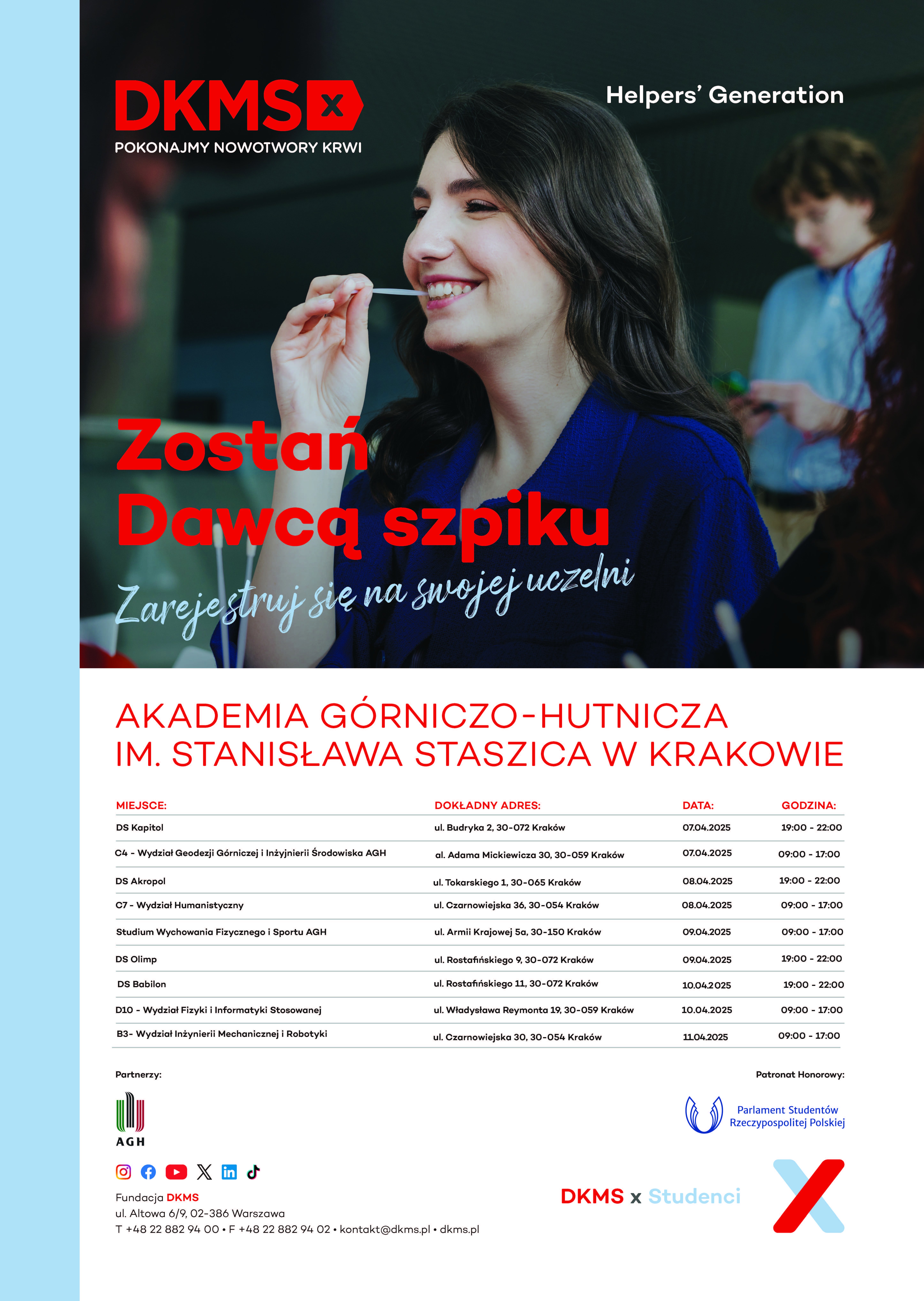 Studenci z całej Polski ponownie łączą siły, by dać chorym na nowotwory krwi szansę na życie! 💪 Dzięki tej niesamowitej inicjatywie, wspólnie z Fundacją DKMS, udało się zarejestrować już 173 500 potencjalnych Dawców!