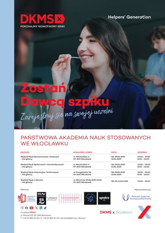 Studenci z całej Polski ponownie łączą siły, by dać chorym na nowotwory krwi szansę na życie! 💪 Dzięki tej niesamowitej inicjatywie, wspólnie z Fundacją DKMS, udało się zarejestrować już 173 500 potencjalnych Dawców!