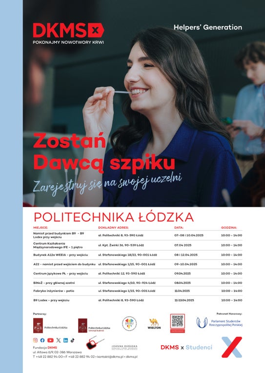 Studenci z całej Polski ponownie łączą siły, by dać chorym na nowotwory krwi szansę na życie! 💪 Dzięki tej niesamowitej inicjatywie, wspólnie z Fundacją DKMS, udało się zarejestrować już 173 500 potencjalnych Dawców!