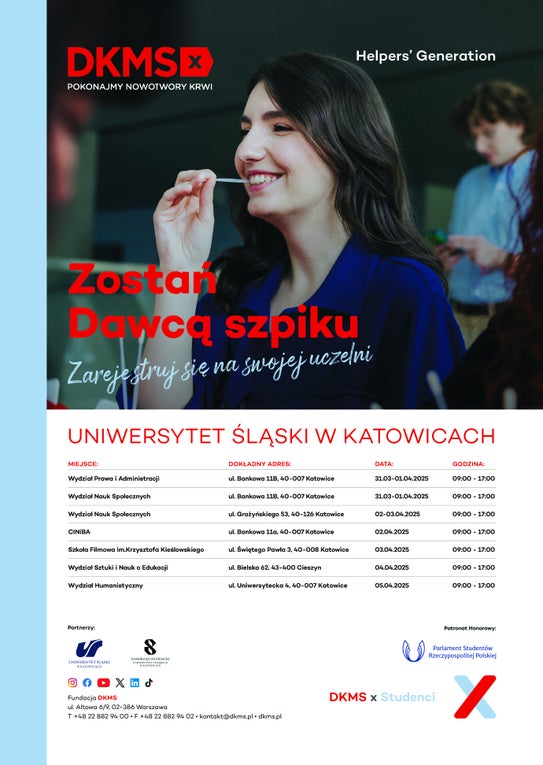 Studenci z całej Polski ponownie łączą siły, by dać chorym na nowotwory krwi szansę na życie! 💪 Dzięki tej niesamowitej inicjatywie, wspólnie z Fundacją DKMS, udało się zarejestrować już 173 500 potencjalnych Dawców!