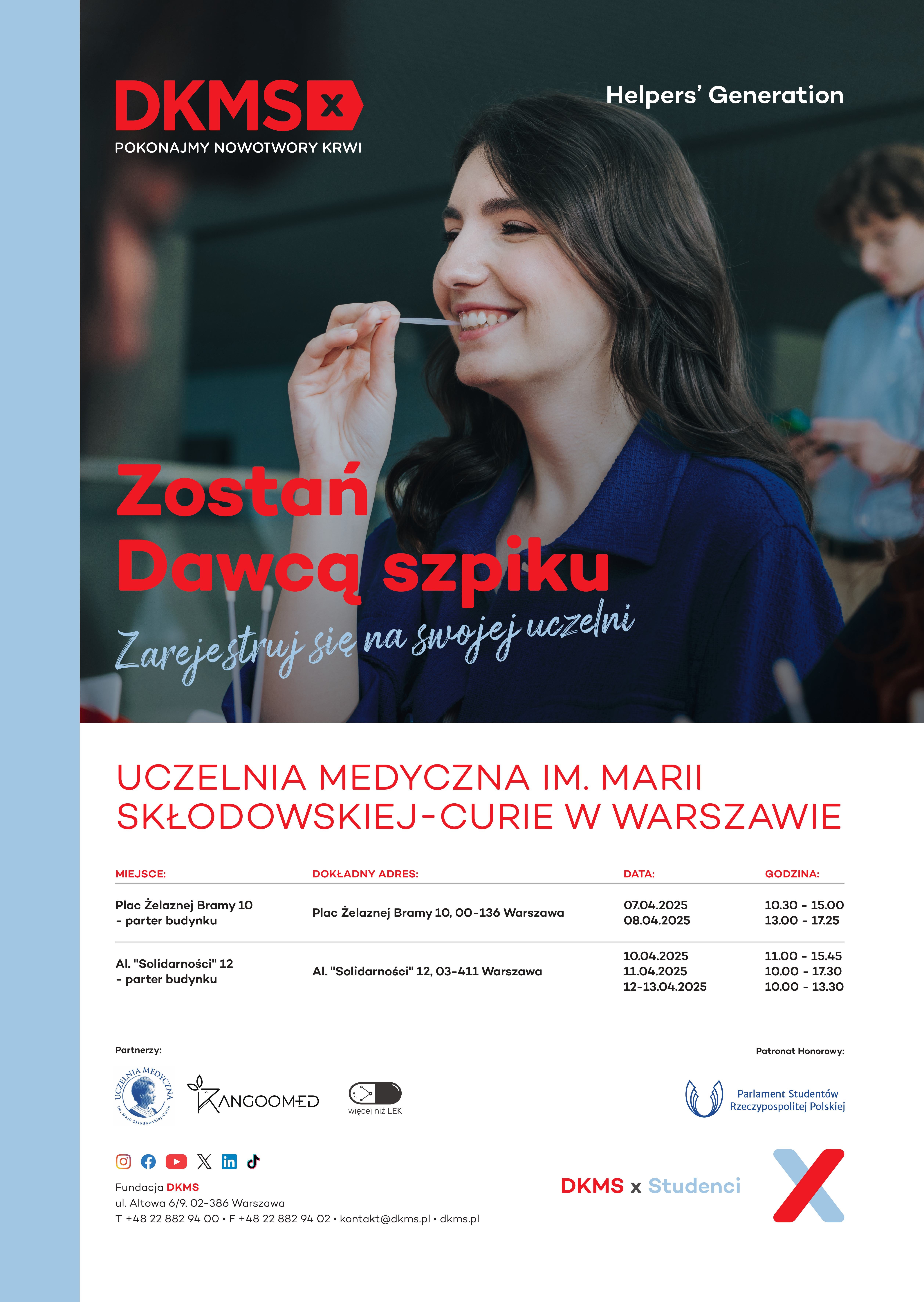 Studenci z całej Polski ponownie łączą siły, by dać chorym na nowotwory krwi szansę na życie! 💪 Dzięki tej niesamowitej inicjatywie, wspólnie z Fundacją DKMS, udało się zarejestrować już 173 500 potencjalnych Dawców!