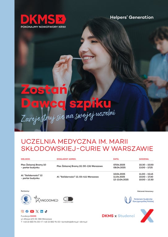 Zostań Dawcą Szpiku na Uczelni Medycznej im. Marii Skłodowskiej-Curie w Warszawie