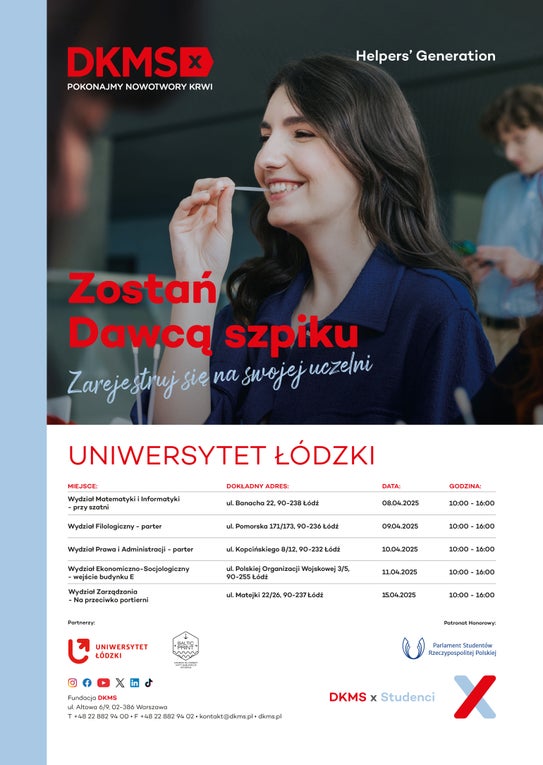 Studenci z całej Polski ponownie łączą siły, by dać chorym na nowotwory krwi szansę na życie! 💪 Dzięki tej niesamowitej inicjatywie, wspólnie z Fundacją DKMS, udało się zarejestrować już 173 500 potencjalnych Dawców!