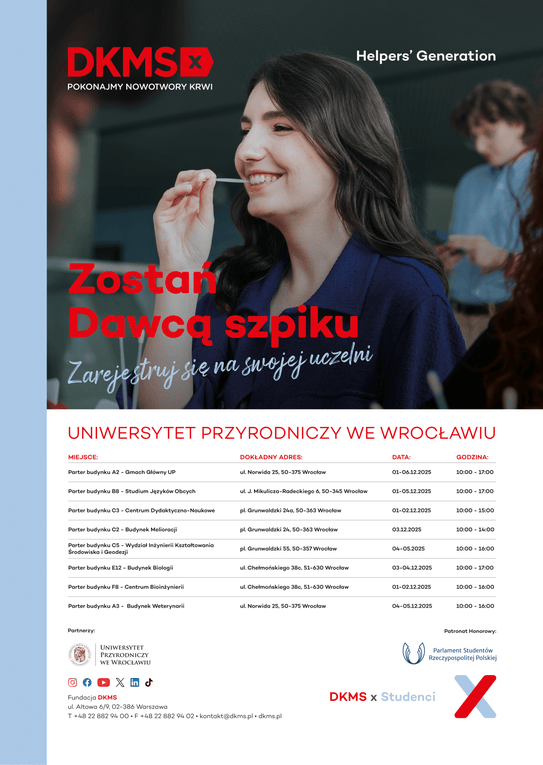 Zostań Dawcą Szpiku na Uniwersytecie Przyrodzniczym w Wrocławiu