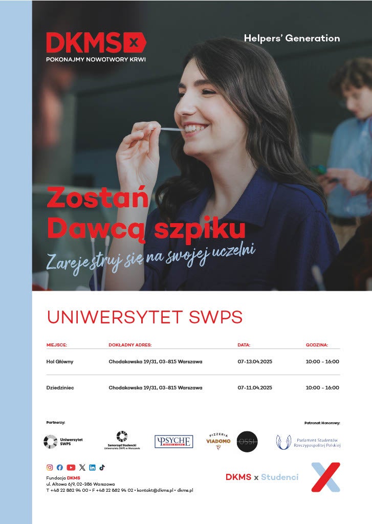 Zostań Dawcą Szpiku na Uniwersytecie SWPS w Warszawie