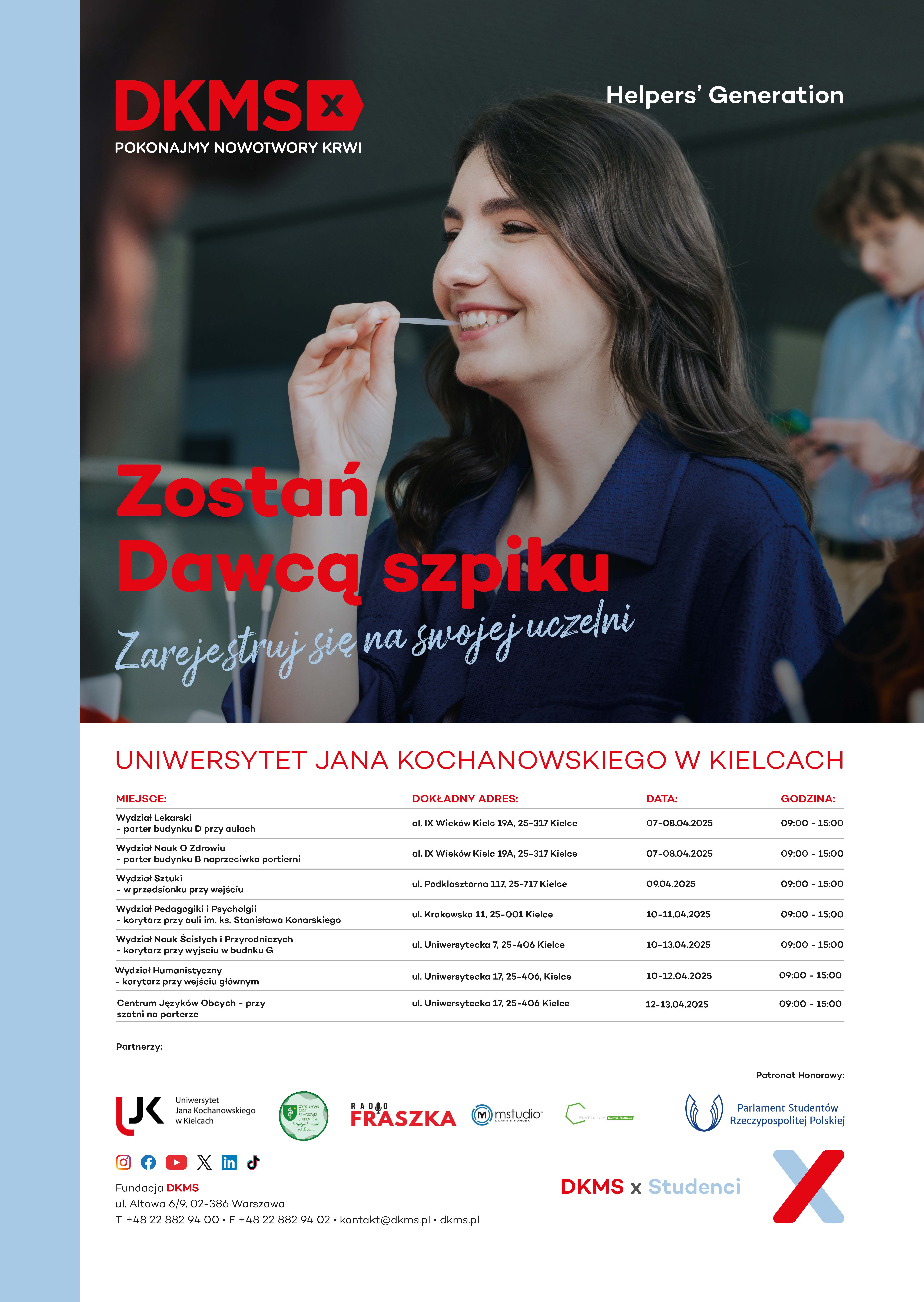 Studenci z całej Polski ponownie łączą siły, by dać chorym na nowotwory krwi szansę na życie! 💪 Dzięki tej niesamowitej inicjatywie, wspólnie z Fundacją DKMS, udało się zarejestrować już 173 500 potencjalnych Dawców!
