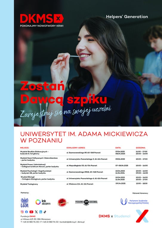 Zostań Dawcą Szpiku na Uniwersytecie im. Adama Mickiewicza w Poznaniu