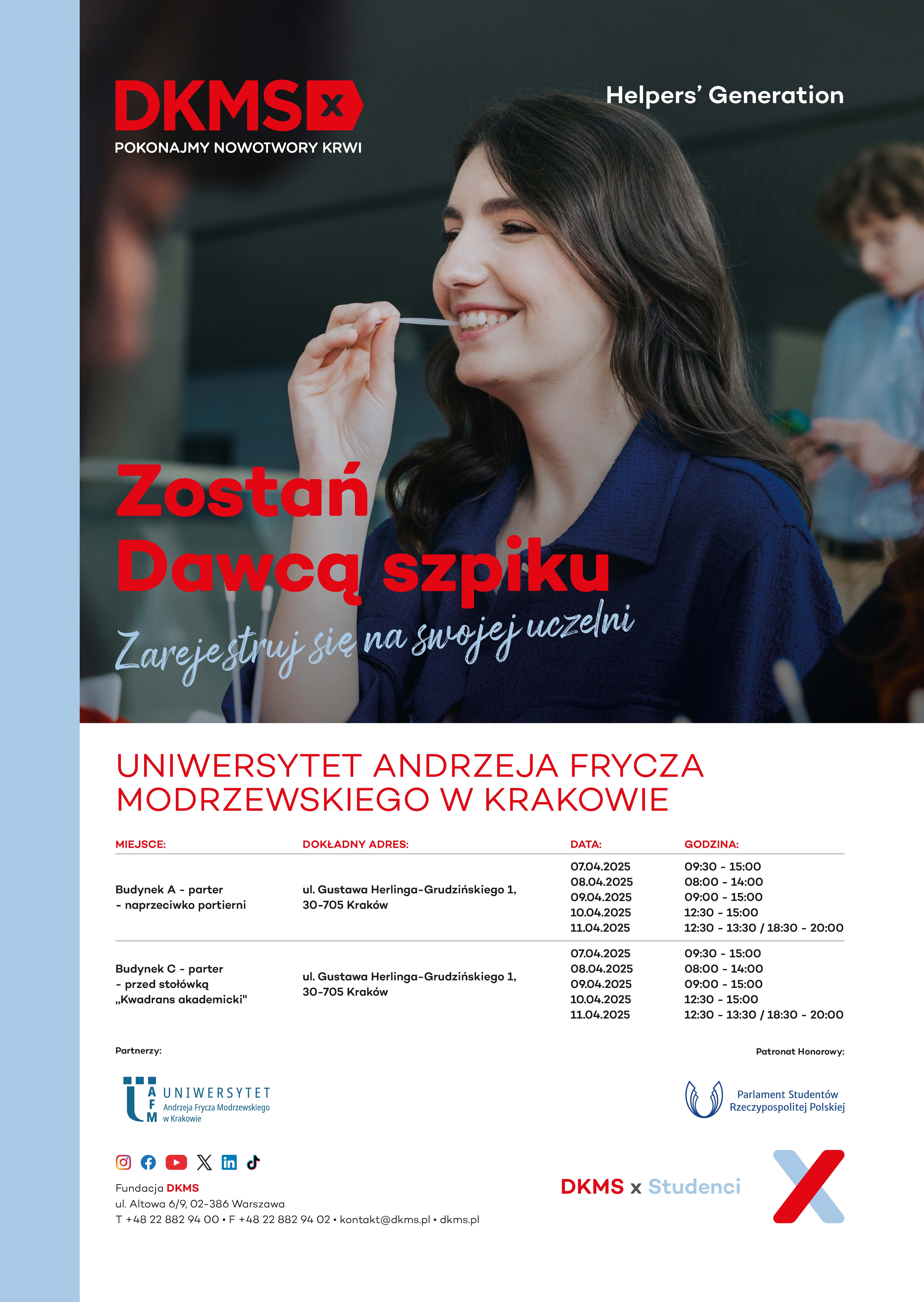 Studenci z całej Polski ponownie łączą siły, by dać chorym na nowotwory krwi szansę na życie! 💪 Dzięki tej niesamowitej inicjatywie, wspólnie z Fundacją DKMS, udało się zarejestrować już 173 500 potencjalnych Dawców!