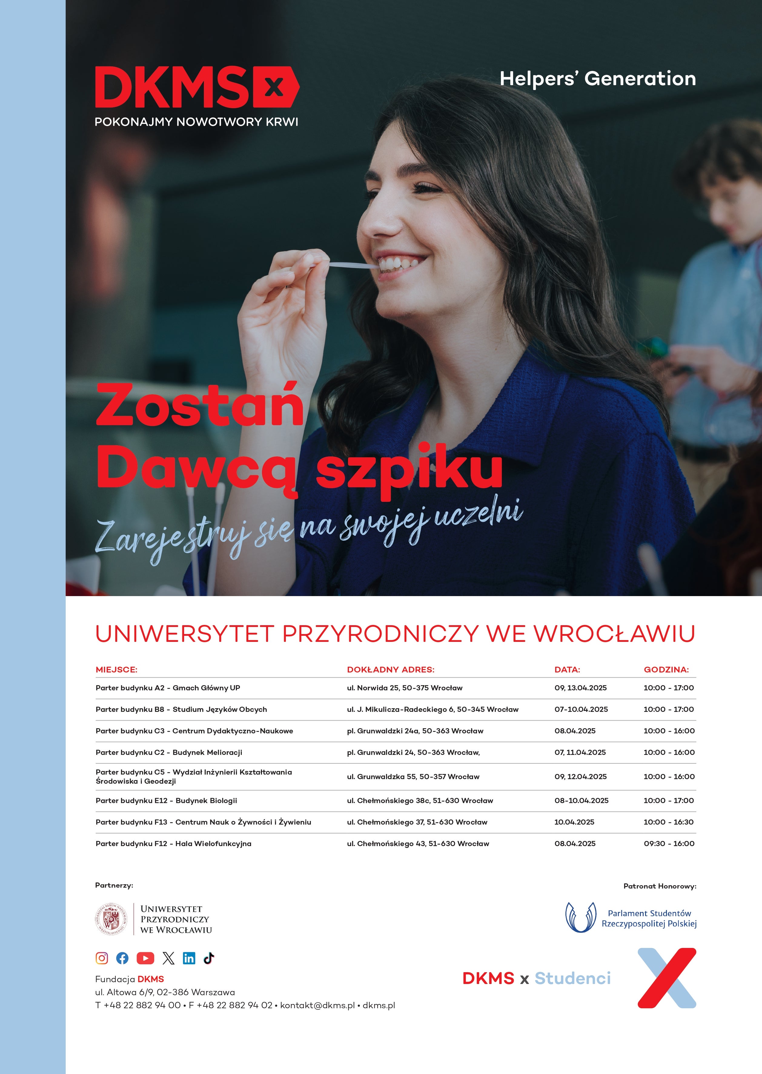 Studenci z całej Polski ponownie łączą siły, by dać chorym na nowotwory krwi szansę na życie! 💪 Dzięki tej niesamowitej inicjatywie, wspólnie z Fundacją DKMS, udało się zarejestrować już 173 500 potencjalnych Dawców!