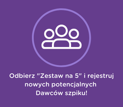Włącz w pomaganie swoją rodzinę lub znajomych. Najlepiej jednych i drugich! Aby zachęcić ich do rejestracji w bazie potencjalnych Dawców Fundacji DKMS, zamów „Zestaw na 5”!