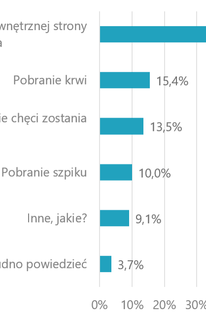 Ponad połowa wszystkich respondentów (57 proc.), którzy wzięli udział w badaniu wie, na czym polega rejestracja w bazie Dawców. Grupa ta została poproszona także o wskazanie konkretnego sposobu, dzięki któremu możemy dołączyć do rejestru Dawców. Największą popularnością cieszyła się odpowiedź: pobranie wymazu z wewnętrznej strony policzka (69 proc.). Zbliżony odsetek ankietowanych wskazał pobranie krwi (15 proc.) oraz samo wyrażenie chęci zostania Dawcą(14 proc.), jako sposoby na dołączenie do bazy potencjalnych Dawców szpiku. 10 proc. ankietowanych odpowiedziało, że będzie to pobranie szpiku a 4 proc.osób nie potrafiło wskazać odpowiedzi.