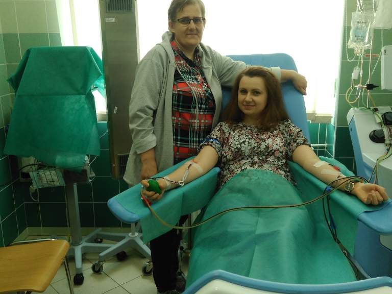 Na oddanie komórek z krwi obwodowej pojechała ze mną oczywiście Mama. Miałyśmy okazję jak nigdy porozmawiać ze sobą, spędzić trochę czasu inaczej niż na co dzień. Po oddaniu komórek przyznała mi się, że strasznie się tego bała. Wyobrażała sobie, że będę leżeć pod plątaniną kabli, że będę „ledwo żywa”, że cała rekonwalescencja będzie długa. Wszystko poszło niezwykle sprawnie. Badania krwi wyszły prawidłowe, szybko zostałam podłączona do separatora, Mama zasiadła obok mnie i dopingowała. Wówczas w mojej głowie zaczęło postępować niezwykłe przeobrażenie. Dopiero wtedy wszystko dotarło do mnie, że właśnie ratuję komuś życie, że gdzieś jest Ktoś, kto czeka na moje komórki, że może Rodzina modli się aby wszystko poszło pomyślnie. I gdy patrzyłam jak tych komórek jest coraz więcej i więcej, uświadomiłam sobie, że tak nie wiele potrzeba by Komuś życie przedłużyć, by wyzwolić go z koszmaru choroby, by ponownie był w domu z najbliższymi. Oddałam ich około 220ml – niepełna szklanka. I proszę zobaczyć jak sprawdza się powiedzenie, że życie to najcenniejszy dar, że zdrowia nie można kupić. Gdybym w ten woreczek włożyła w darze pieniądze – nie uratowałabym Tej osoby. Owszem, pieniądze mają ogromną wartość i zdaję sobie z tego sprawę – cała procedura i leczenie jest niezwykle kosztowne ale to nie one same w sobie są najcenniejsze.